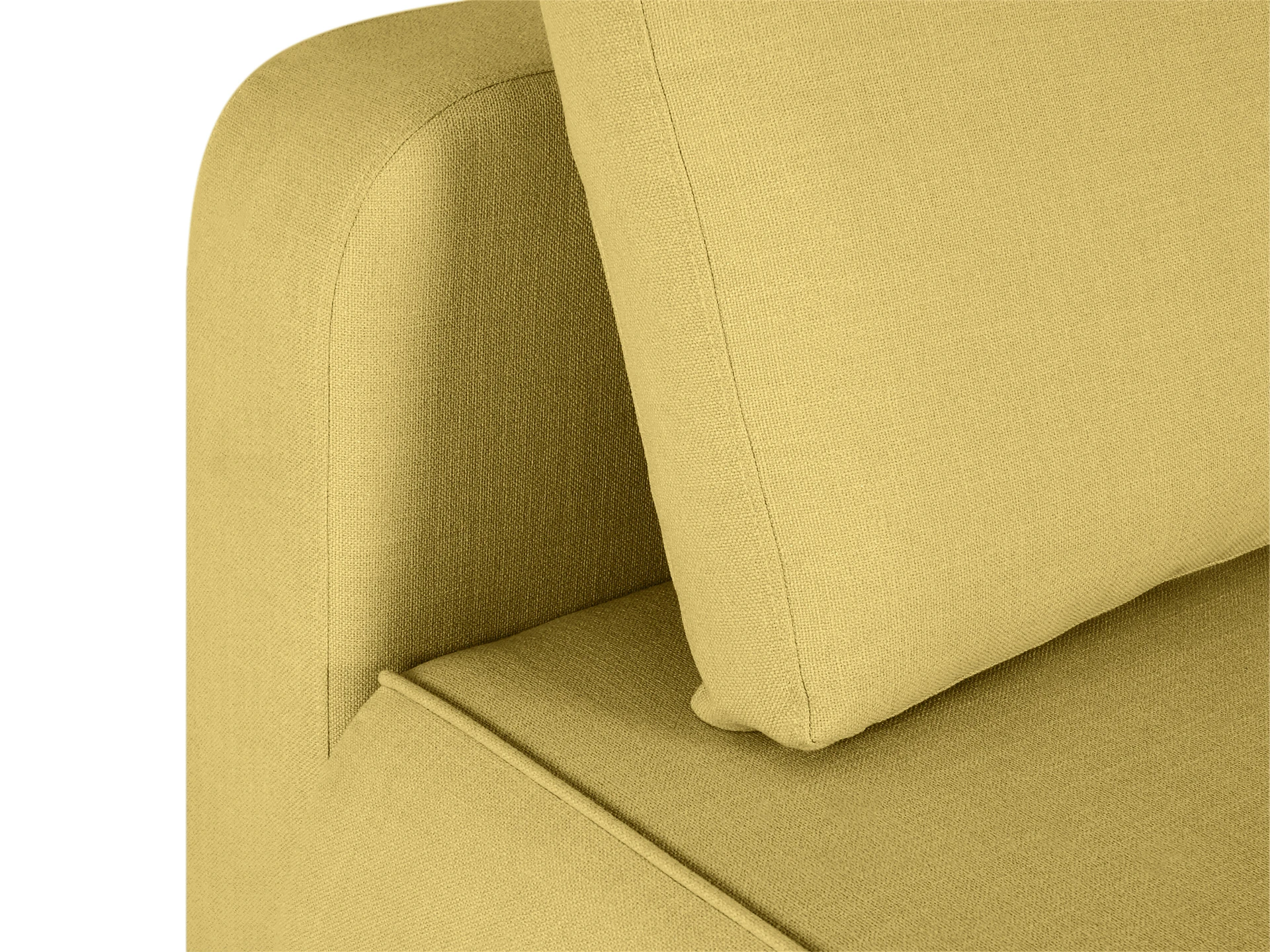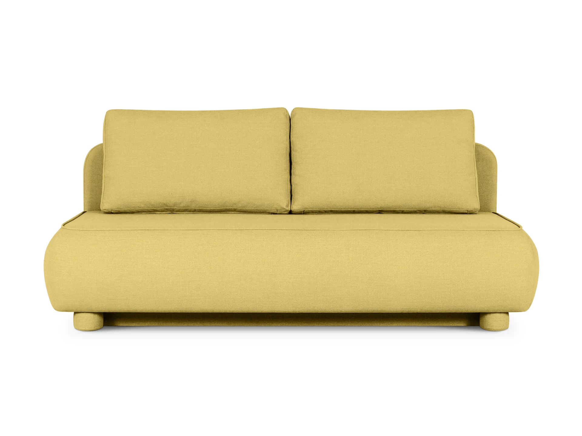 Диван комплектуется двумя спинными подушками в габаритных размерах: 850х500х200 мм. - 2 шт. Наполнитель подушек – синтетическое волокно «синтепух». Облицовочные чехлы дивана не съёмные. Олицовочные чехлы декоративных подушек - съемные на молнии. Внутренние чехлы декоративных подушек несъемные. На основание короба установлены подпятники с фетром на саморезе D 24 мм. Выкатная часть сидения опирается на декоративные, обтянутые тканью цилиндрические опоры h 100 мм., с установленными в них роликами. В диване используется механизм трансформации типа Еврокнижка. При раскладывании диван трансформируется в кровать с размером спального места 2060 х 1530 мм.