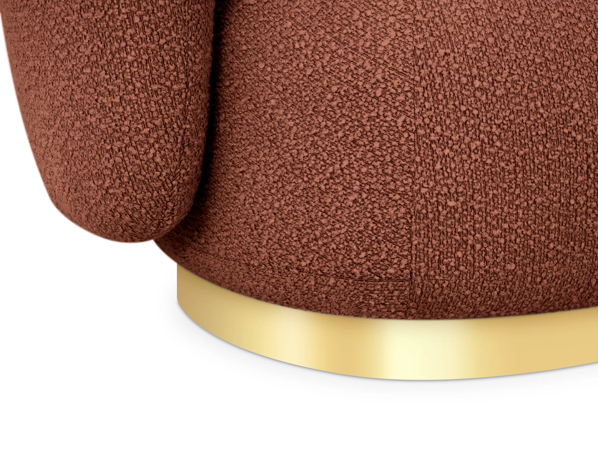 Коллекция диванов, кресел, кушеток, пуфов, дизайн которых сфокусирован на округлых мягких формах. Это и дань актуальным трендам, и стремление к позитивному «обволакивающему» пространству, располагающему к уютному отдыху. Смелые объемы, плавные линии привнесут в интерьер динамику, свежесть, пластичность. Закругленные элементы, фактурные обивки, естественные оттенки создают атмосферу комфорта и дружелюбного притяжения. Высокие спинки, плавно перетекающие в подлокотники, обеспечивают эргономичную поддержку и чувство безопасности, уединения. Эти великолепные модели подарят теплые тактильные ощущения. С помощью Lucca можно стильно оформить как домашнюю гостиную, спальню, детскую, так и креативное пространство, творческую студию, галерею, салон, лаундж-зону, бутик. Настоящее олицетворение гедонизма, красоты и элегантности. Предметы из коллекции гармонично комбинируются между собой, а также хорошо дружат с другими элементами разных стилистических направлений. Каркас изделия состоит из деревянных брусков (хвойных пород), соединенных с помощью мебельных скоб и клея, березовой фанеры марки ФК (класс эмиссии формальдегида фанеры - Е1), картона прокладочного, плиты древесноволокнистой средней плотности (МДФ). Состав настила сидения: металлические пружины (тип «змейка»), ремни эластичные, войлок, несколько слоев пенополиуретана различных толщин и марок (стандарт, супермягкий), синтепон. Состав настила спинки: несколько слоев пенополиуретана различных толщин и марок (стандарт, высокоэластичный), синтепон. Лицевой чехол дивана - несъемный, крепится к каркасу при помощи мебельных скоб. В основании изделия - металлическая лента из нержавеющей стали с разными цветами покрытий: матовое золото, медь, графит, никель. Опоры – пластиковые подпятники с фетровыми накладками. Подушки приобретаются отдельно.