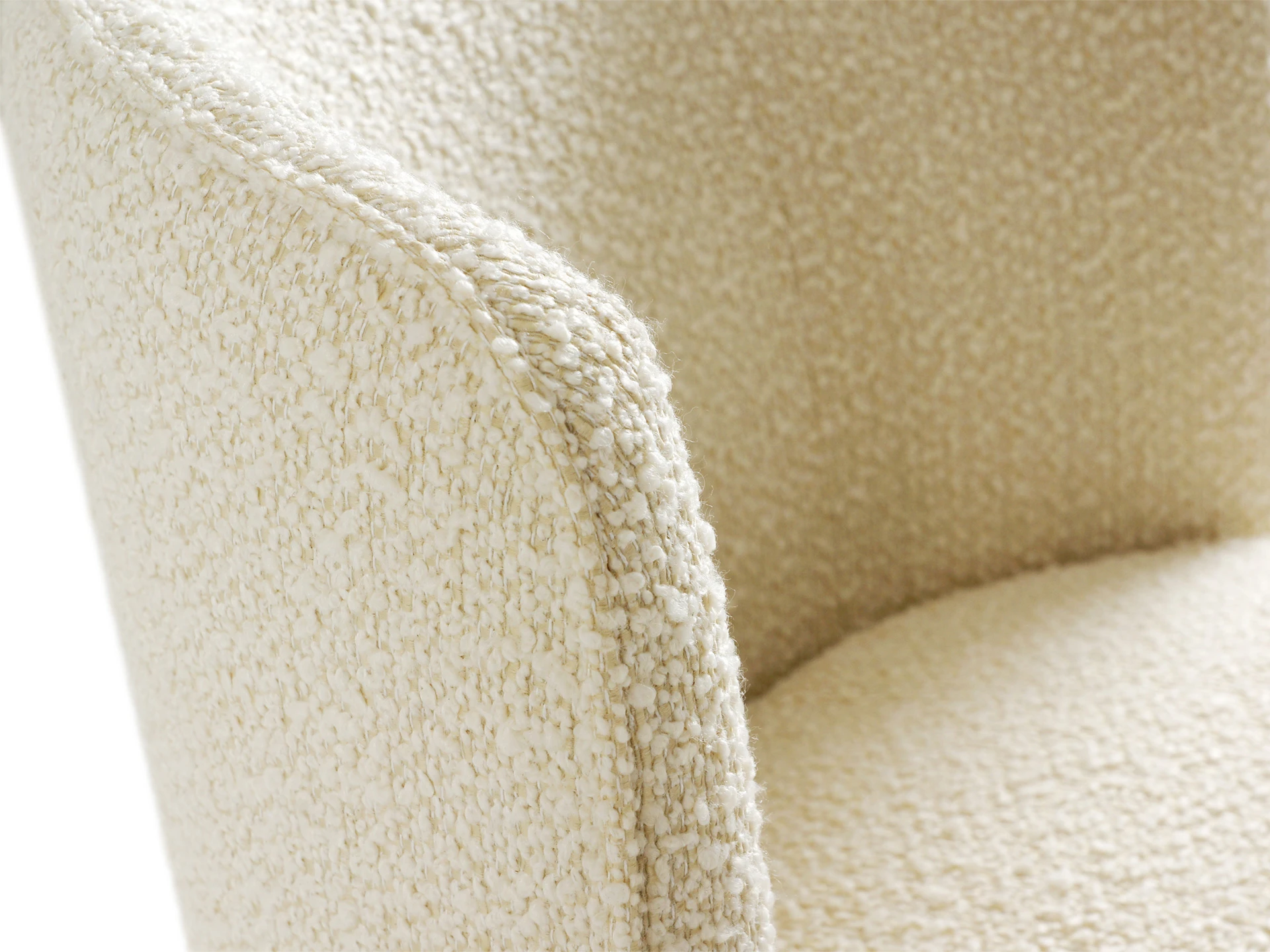 Кресло Onore очаровывает плавным силуэтом и лаконичным дизайном. Прямые граненые ножки из дерева невысоко приподнимают круглое сиденье с полукруглой спинкой. Симбиоз форм создает простой и выразительный силуэт, рождающий чувство спокойствия, умиротворения. «Обнимающая» спинка отвечает за защиту и уединение. Фактурная обивка букле придает мягкости, уюта, тепла.Кресло Onore подходит для оформления городской квартиры, студии, загородного дома, офиса, кафе, отеля. Эстетично впишется в гостиную с настроением неоклассики, сканди, минимализма, украсит спальню, детскую, кабинет, составит изящную пару журнальному или косметическому столику, дивану, пуфу, банкетке и подарит вам бесценные часы комфортного отдыха. Материал обивки - искусственный мех, материал ножек - массив дерева. На ножках предусмотрены специальные подпятники, которые предотвращают скольжение и повреждения напольного покрытия. Размер упаковки: 72х69х72 см.