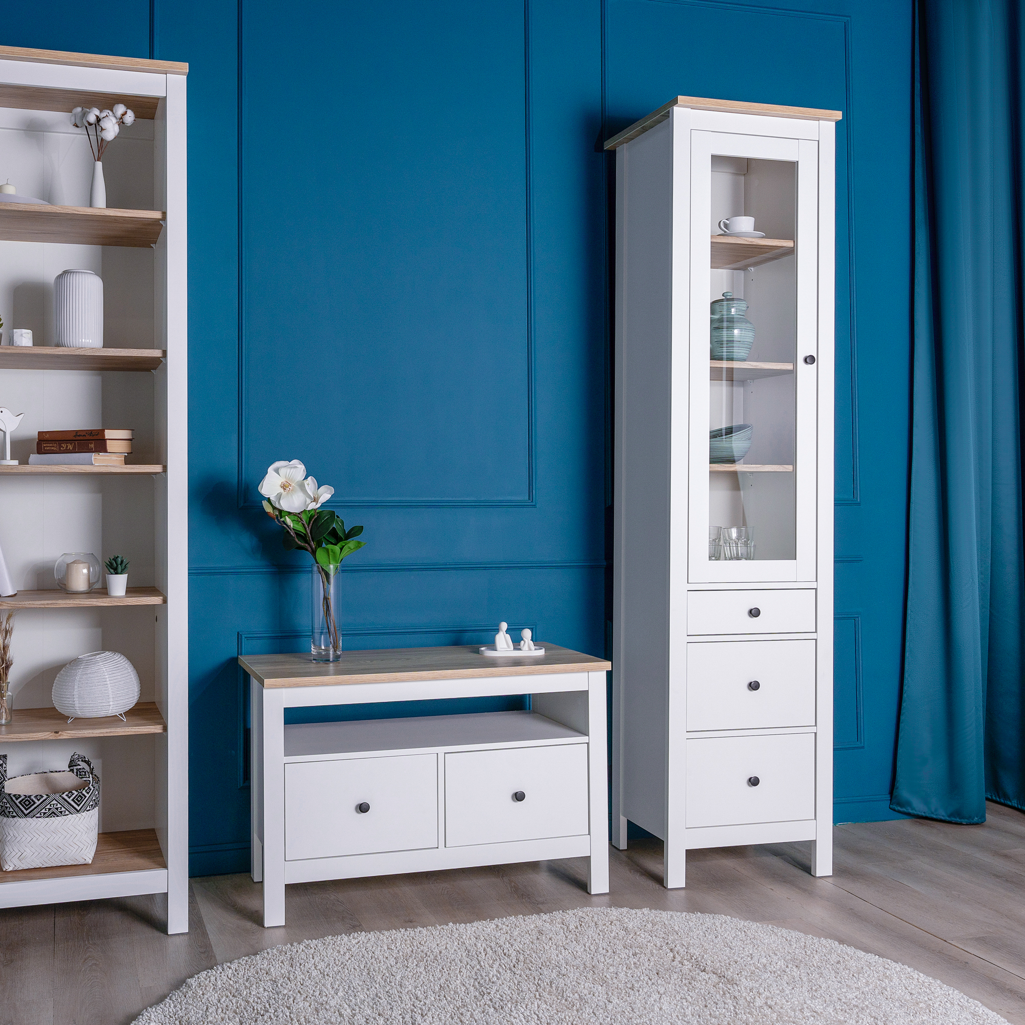 САГА шкаф с витриной 50 белый/ясень RU