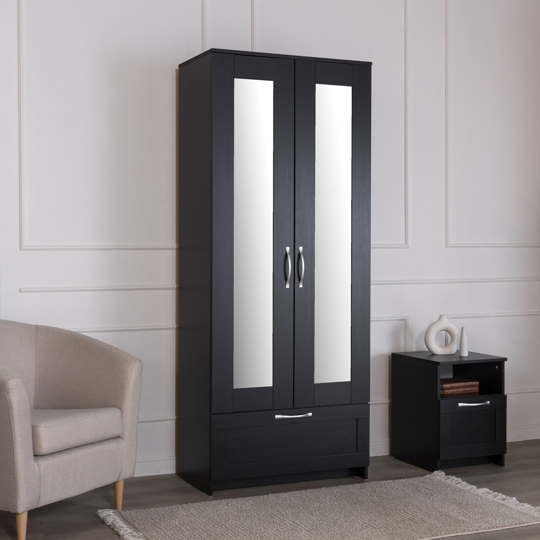 СИРИУС шкаф 2 двери и 1 ящик 78х59х220 Дуб Венге RU (с 2 зеркалами)