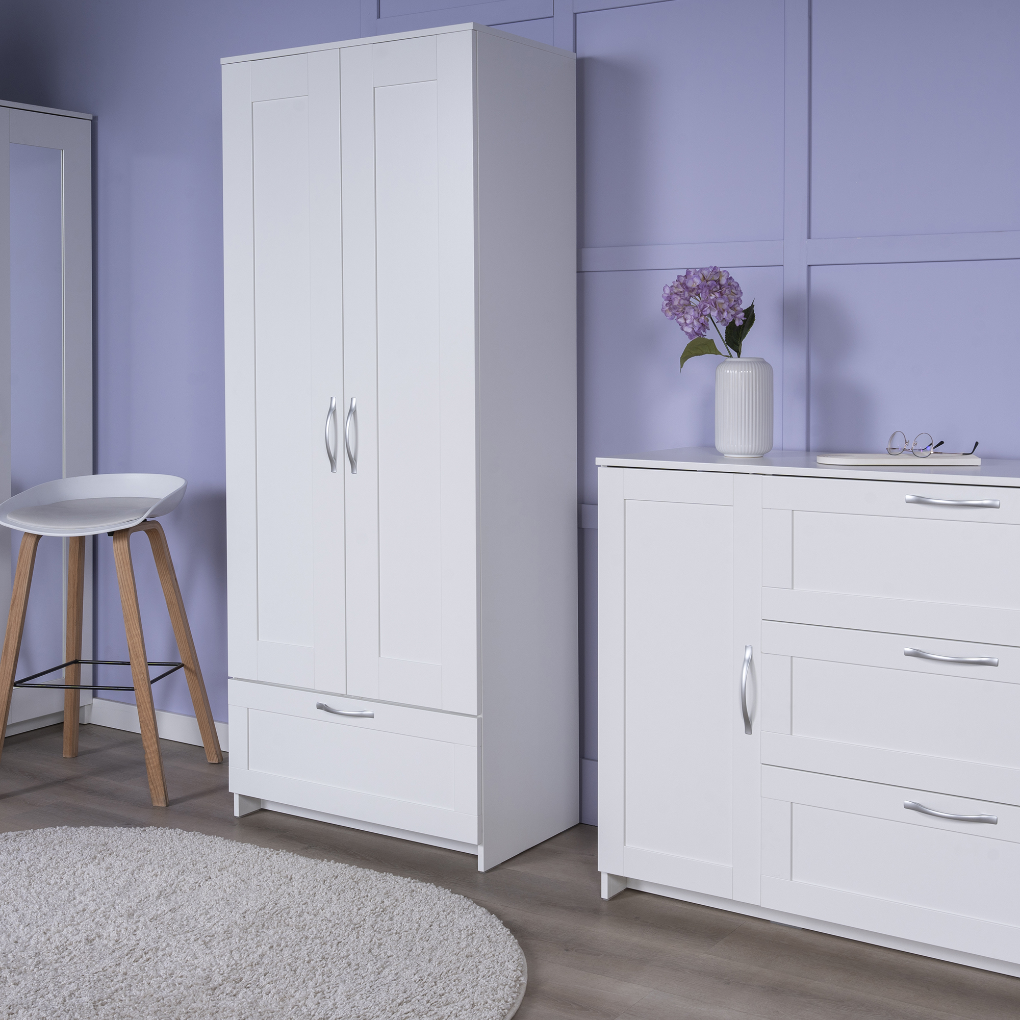 СИРИУС шкаф для одежды 2 двери и 1 ящик белый RU