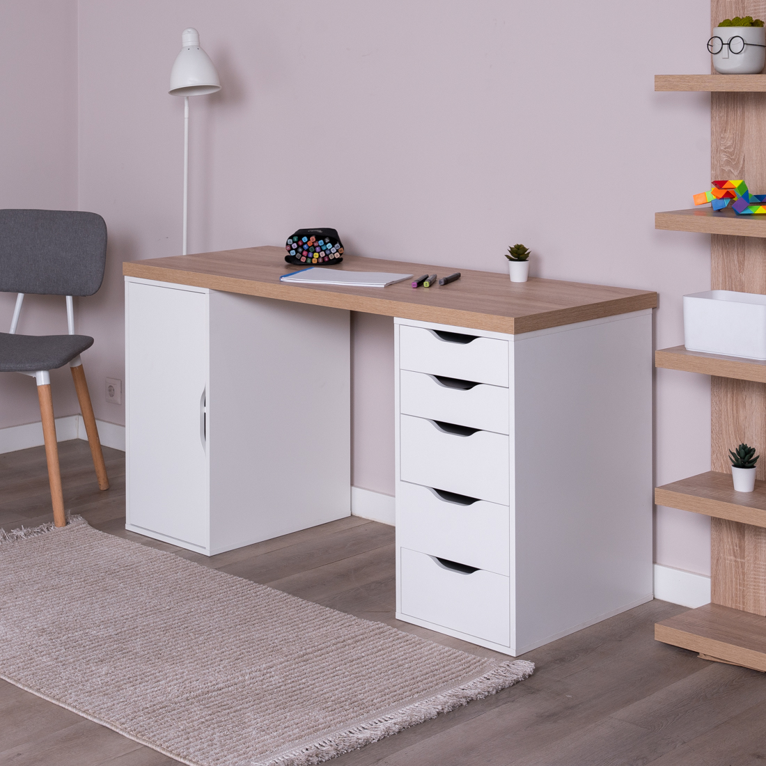 Ингар 2/5/ДВ стол письменный 140x75x55, дуб беленый/белый