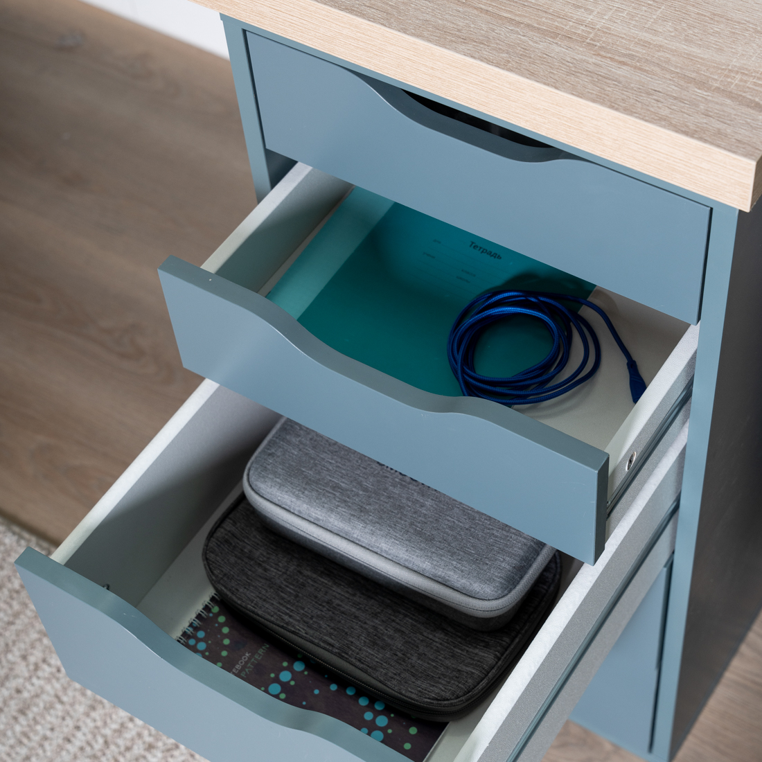 Ингар 2/5/ДВ стол письменный 140x75x55, дуб беленый/серо-бирюзовый
