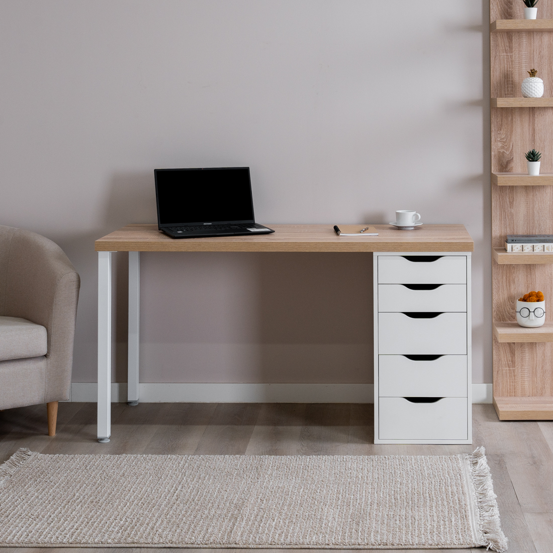 Ингар 2/5Т стол письменный 140x75x55, дуб беленый/белый