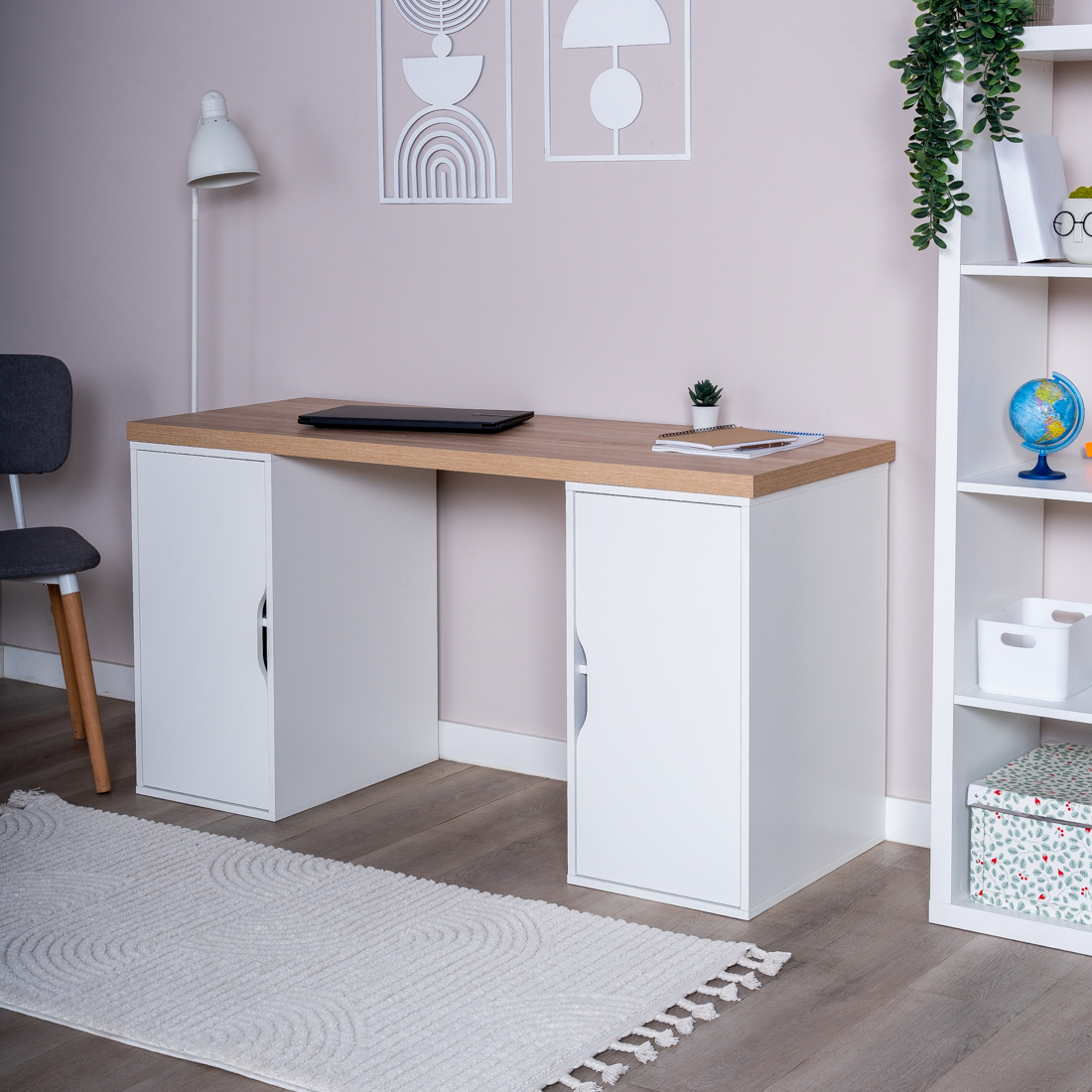 Ингар 2/ДВ/ДВ стол письменный 140x75x55, дуб беленый/белый