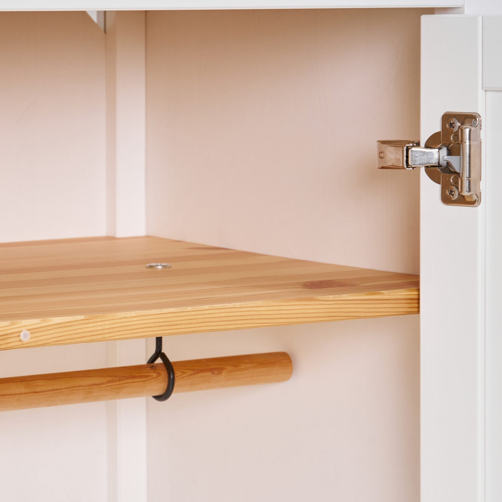 Разработан с учётом роста и потребностей детей. Эргономичный дизайн шкафа КОЧ продуман до мелочей, обеспечивая комфорт и функциональность пространства. Шкаф имеет вместительный ящик на роликовых направляющих, штангу для одежды, внутреннюю полку, а также внешнюю полку, которая прекрасно подойдет для хранения игрушек или крупногабаритной одежды. На дверцах шкафа установлены петли с доводчиками.