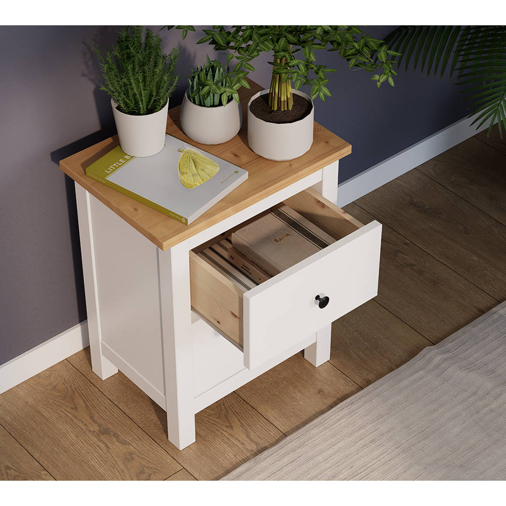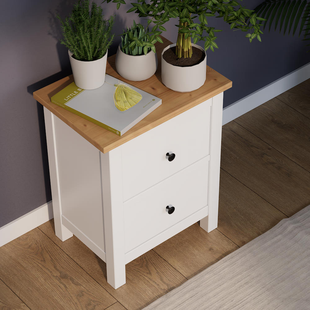Тумба прикроватная с 2 ящиками ХЕМНЭС ориг. белый / светло коричневый