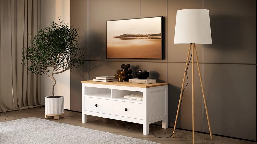 ТВ-тумба КЫМОР / ХЕМНЭС 124 (Россия) оригинал белый / светло коричневый
