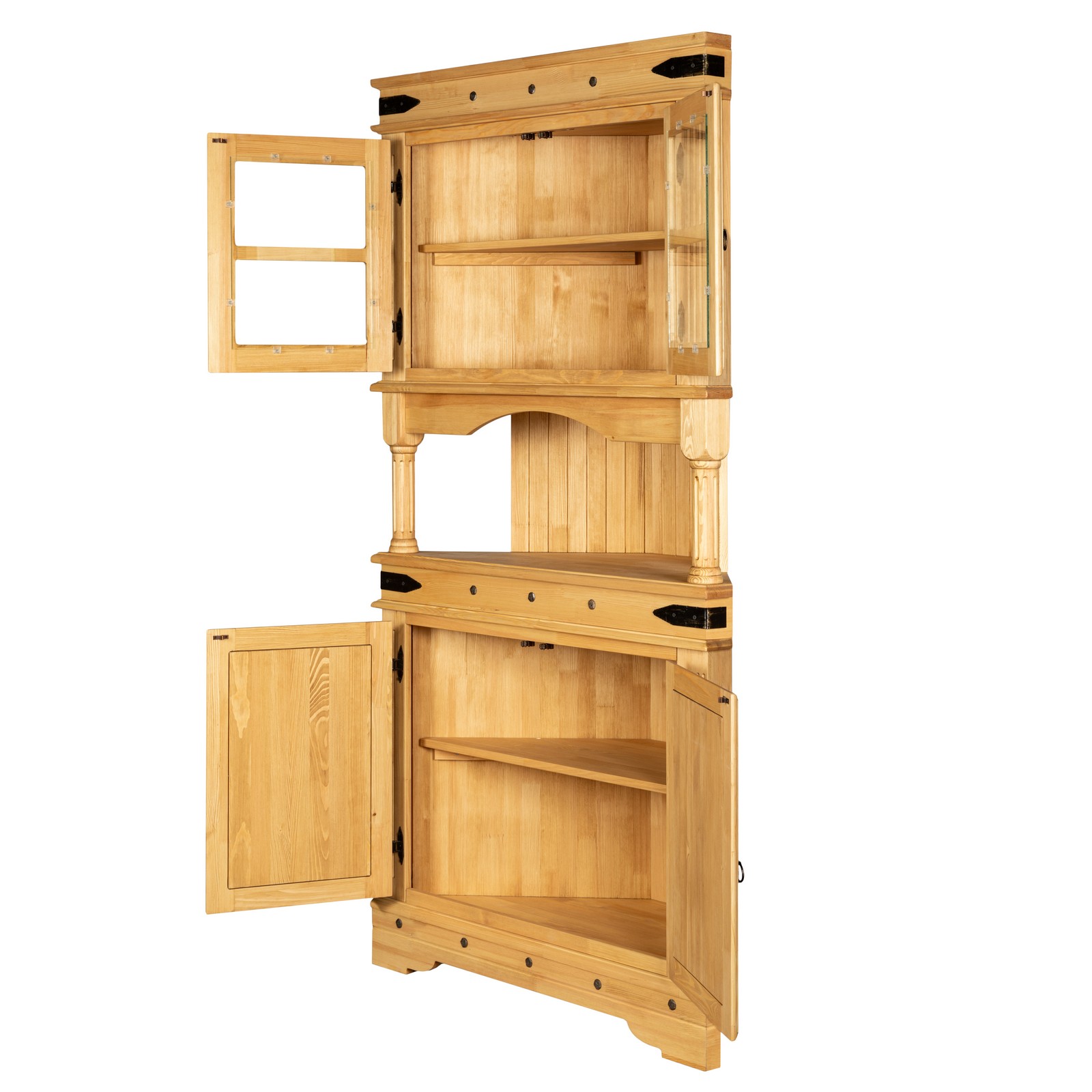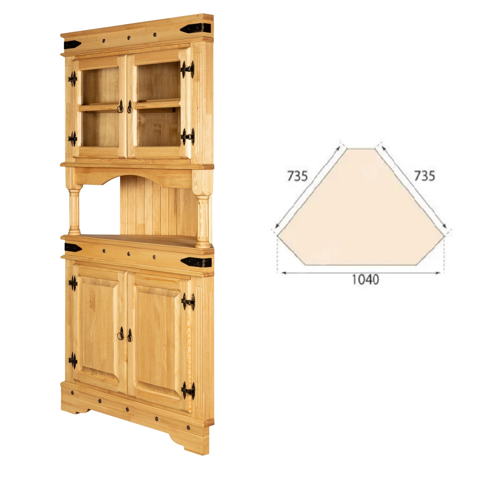 Угловой деревянный буфет из массива сосны, покрытие "мёд".