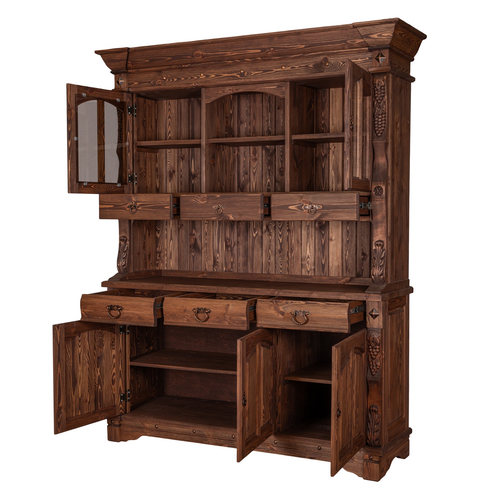 и состоит из тумбы - нижней части буфета и верхней части.
