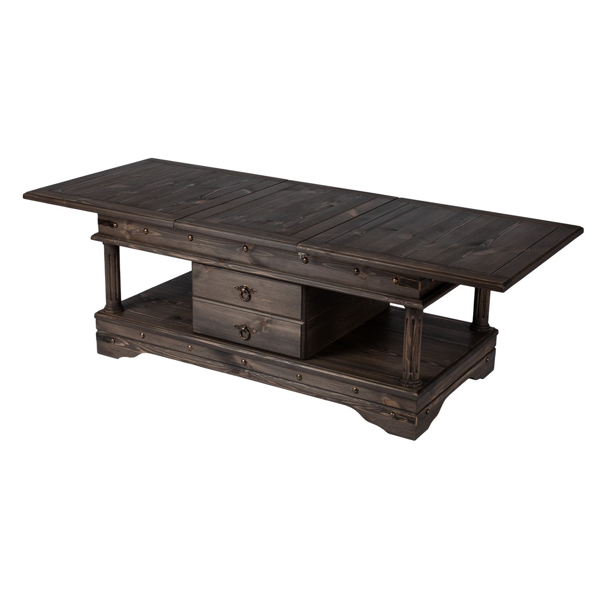 Стол журнальный Консул ВЕНГЕ с раздвижным механизмом для просторной гостиной. Оборудован дополнительной вставкой для столешницы размером 40 см и специальными нишами для бутылок. .