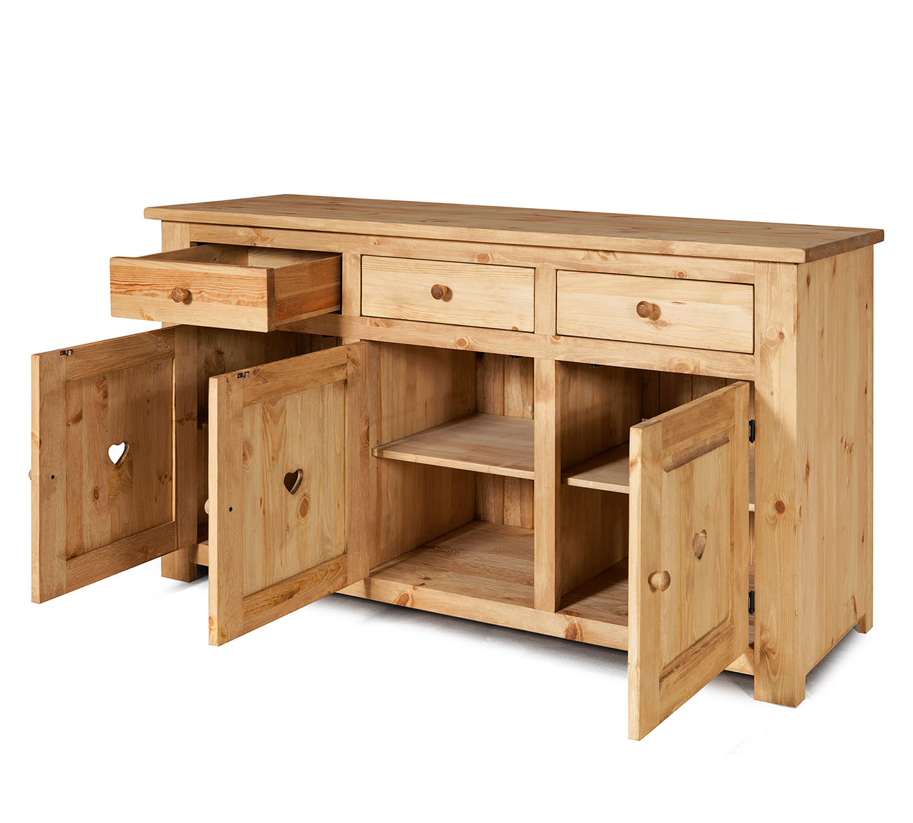 3 дверки с прорезанными сердечками (за каждой дверкой полка).