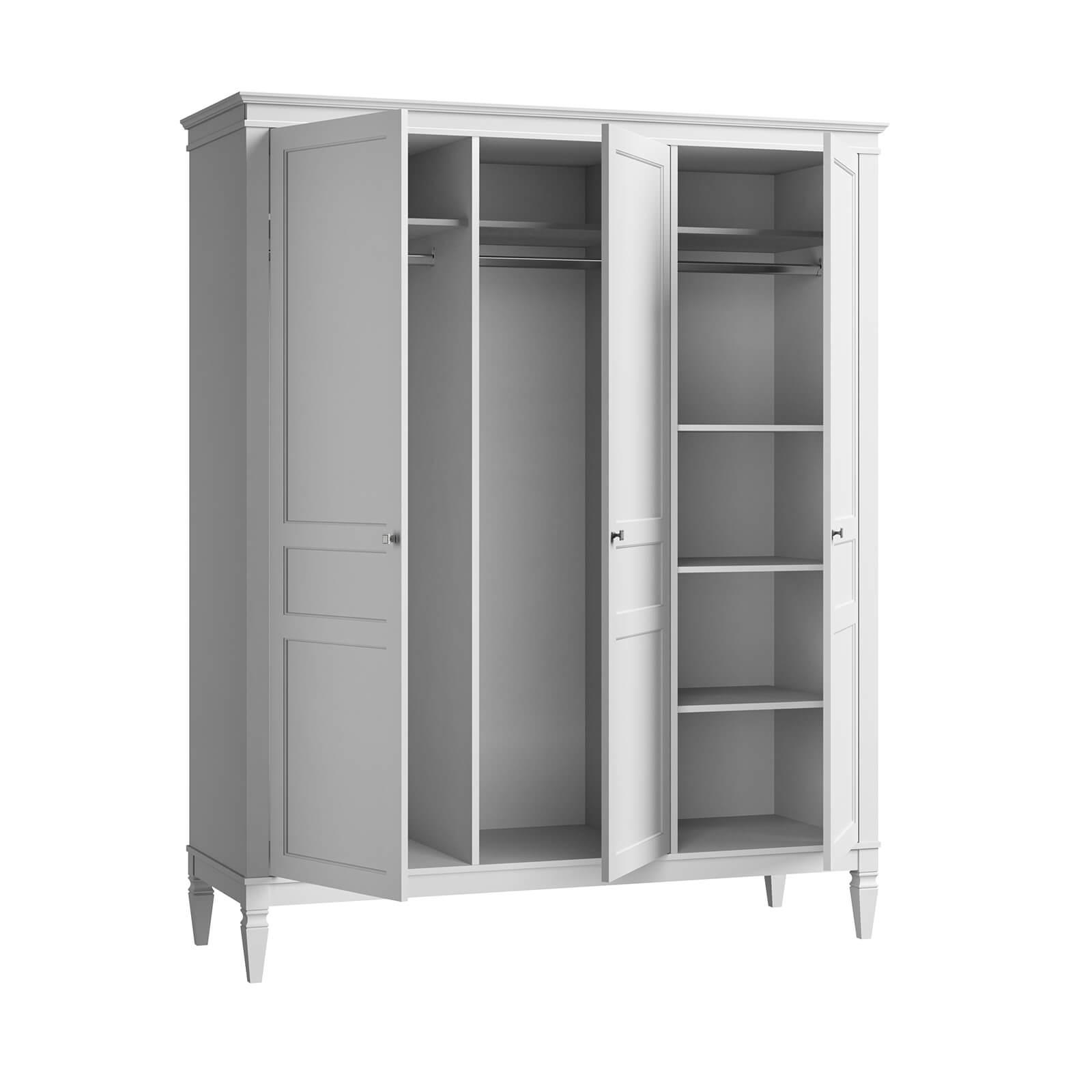Возможность размещения внутренних полок и штанги с любой стороны.