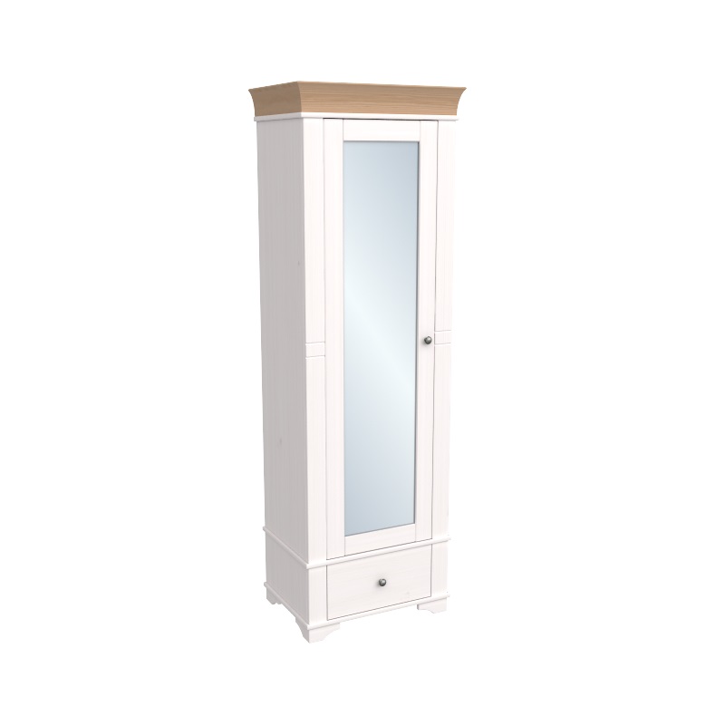 Шкаф Бейли 1 дверь с зеркалом в отделке белый воск/брвун(антик).