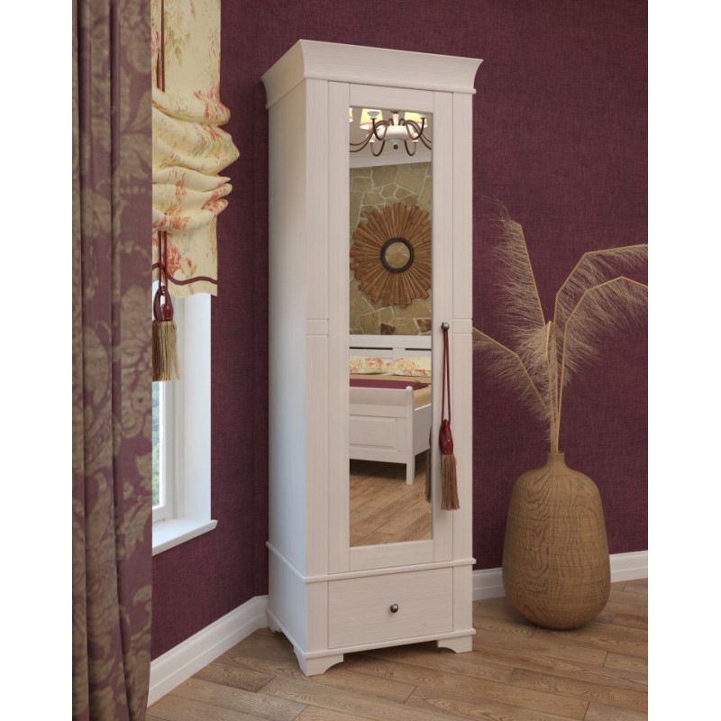 Шкаф 1-дверный с зеркалом Бейли белый воск