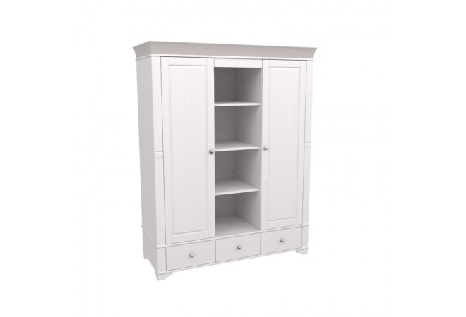 три выдвижных ящика, левое и правое отделение с полкой и штангой, среднее отделение с полками