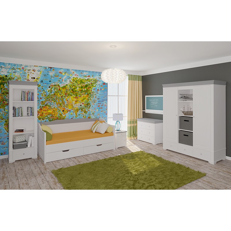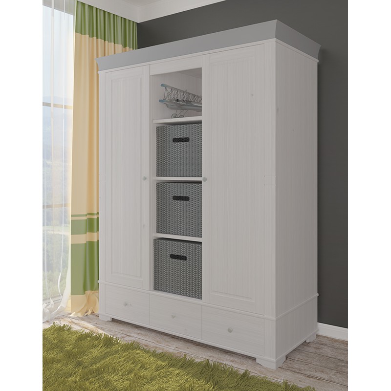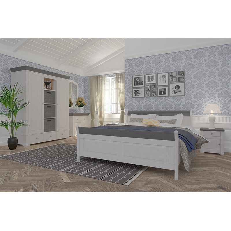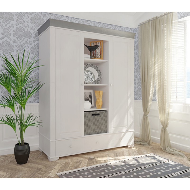 Шкаф Бейли 2х дверный с полками белый воск/антрацит массив сосны.