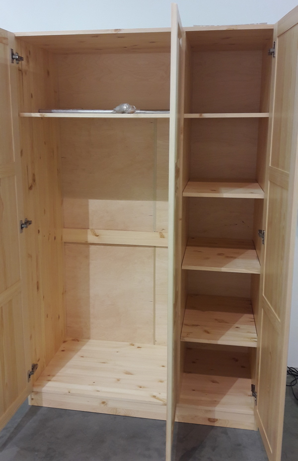 Трехдверный комбинированный шкаф из массива сосны - неокрашенный - без лака - под самостоятельную окраску.