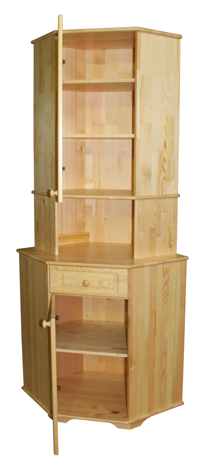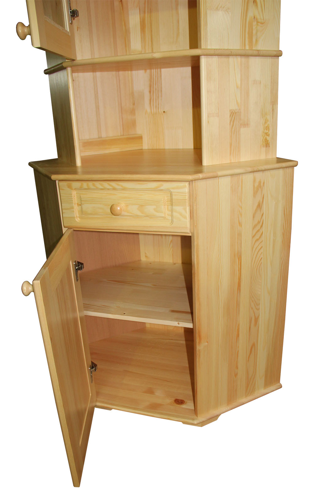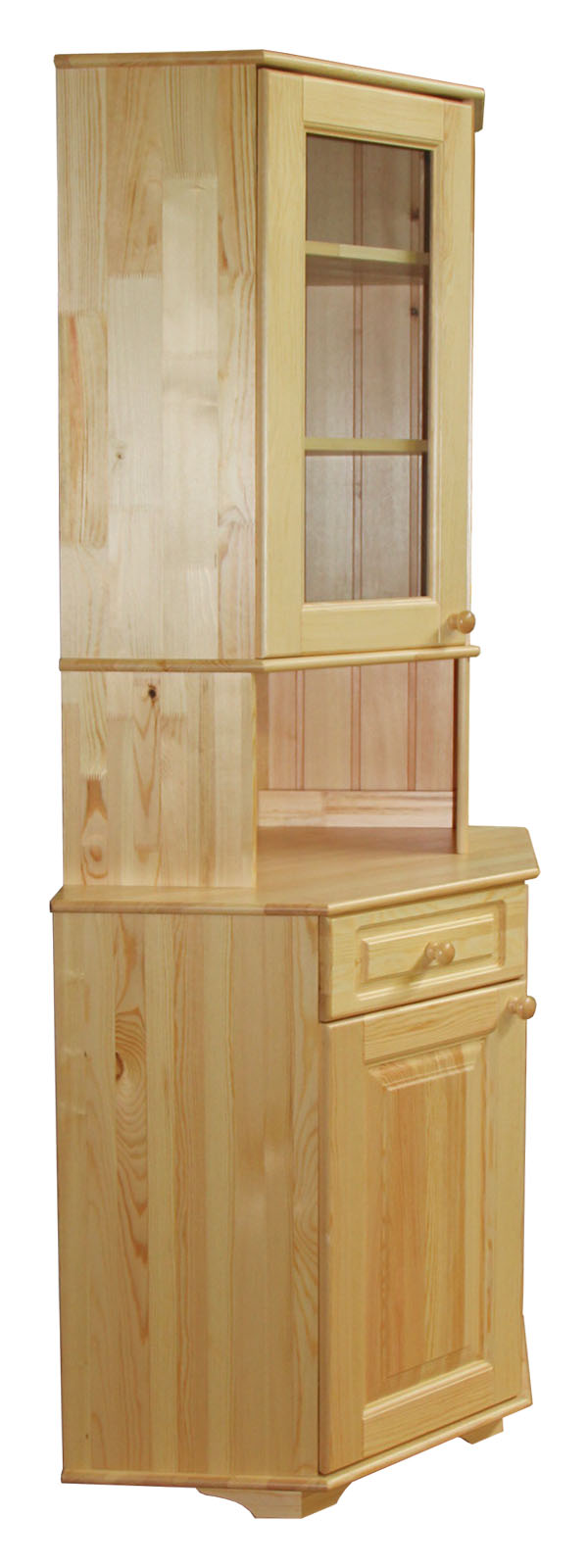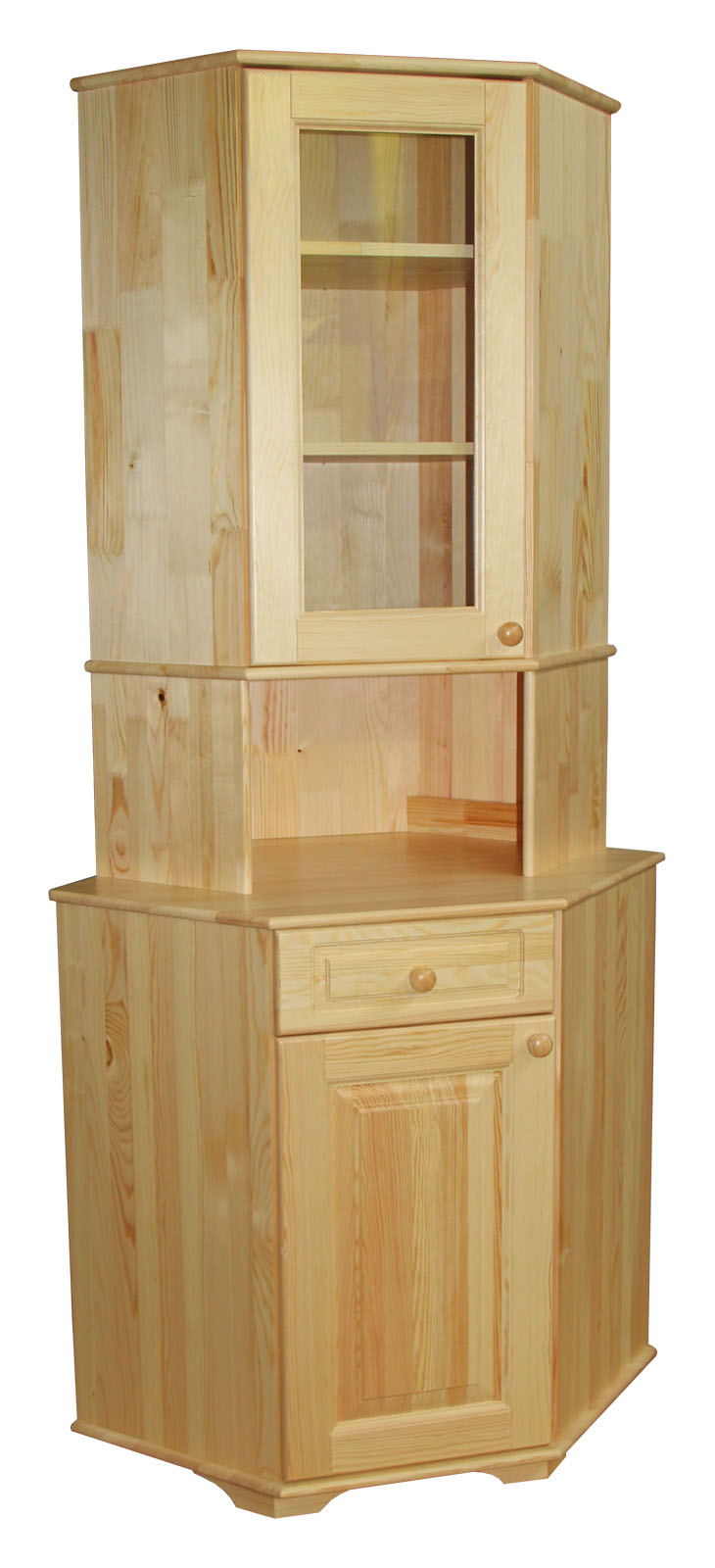 Недорогой, но качественный буфет из сосны Владимир угловой массива дерева в лаке.