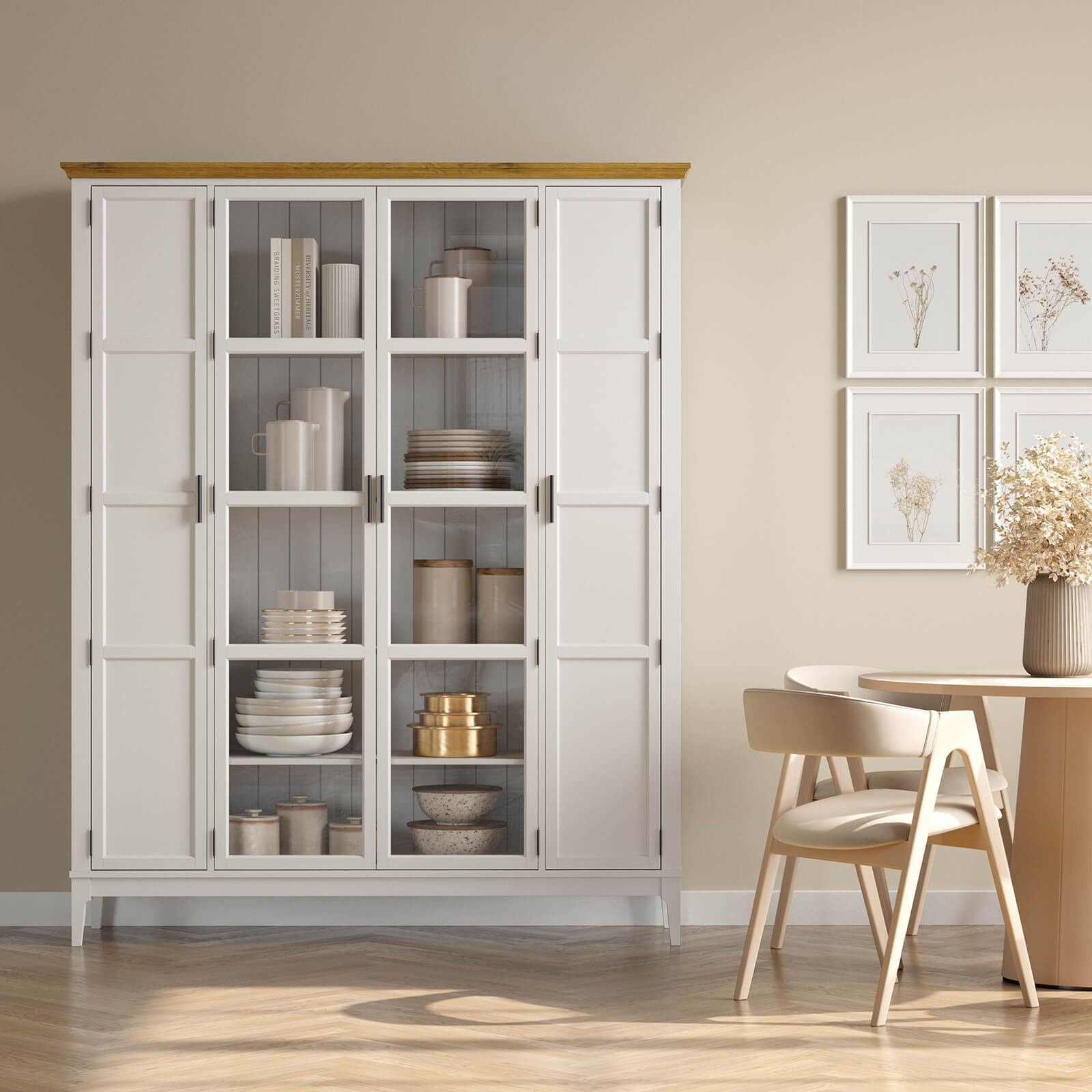 2 глухие и 2 стеклянные распашные двери.