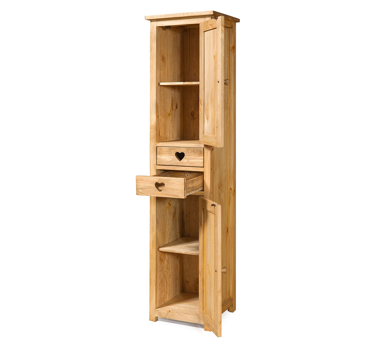 За каждой дверкой полка, 2 выдвижных ящика на деревянных полозьях.