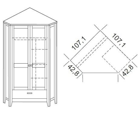 Деревянный шкаф угловой из коллекции мебели Сиело для детской комнаты. Полную комплектацию шкафа смотрите в инструкции по сборке.