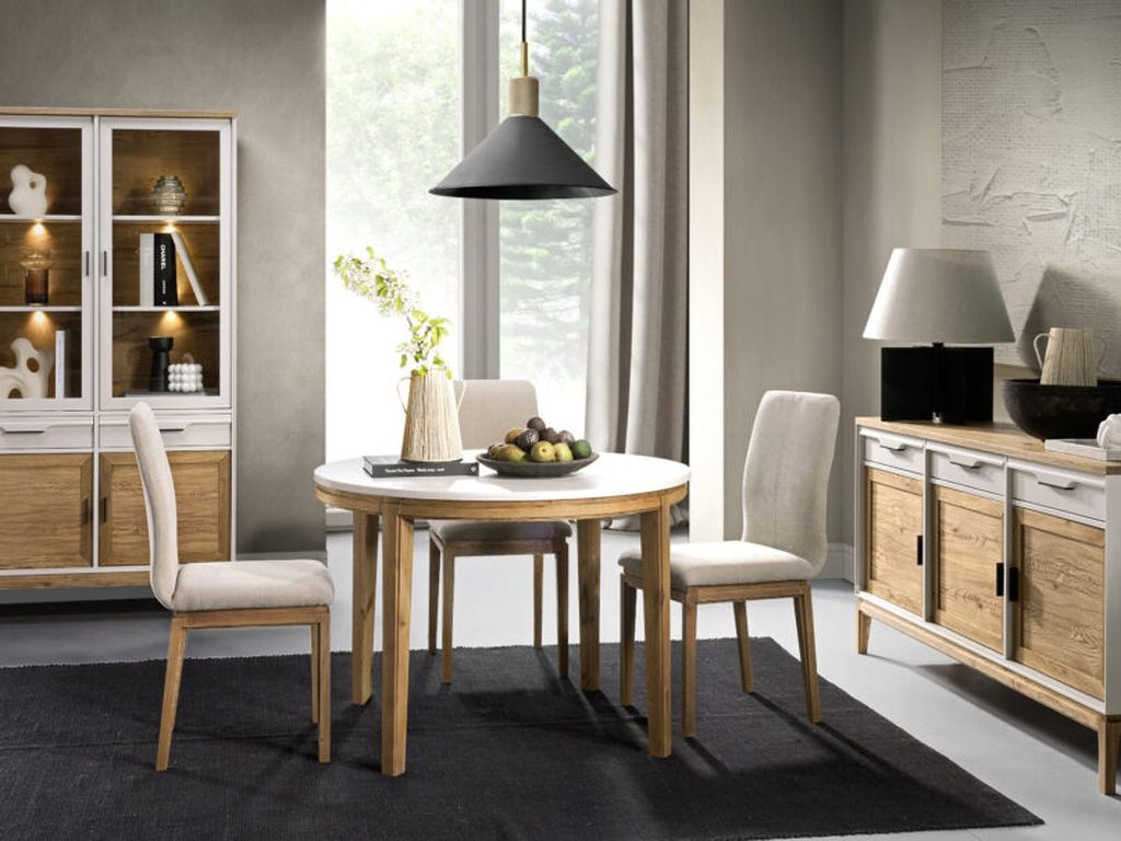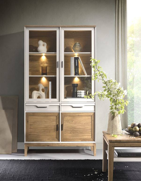 Крышка, нижняя дверца и основание окрашены в цвет «антик», остальные части изделия в белом цвете. Через покрытие цвета антик видна природная текстура сосны.  Он будет естественно смотреться не только на кухне, но и в гостиной. При этом он совместим с предметами в разных стилях: скандинавском, классическом, винтажном, кантри.