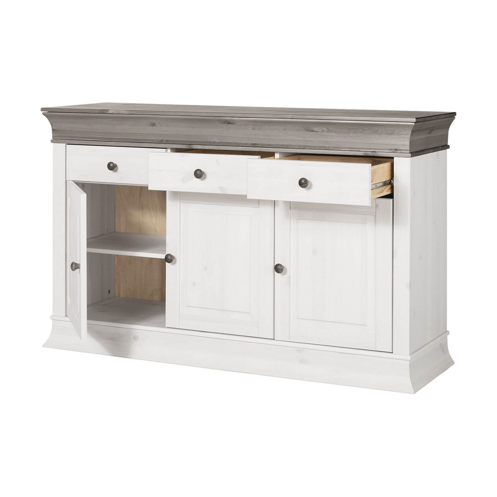Буфет Бостон Белый воск+серый