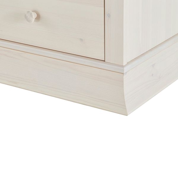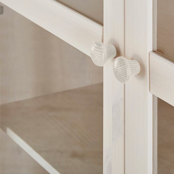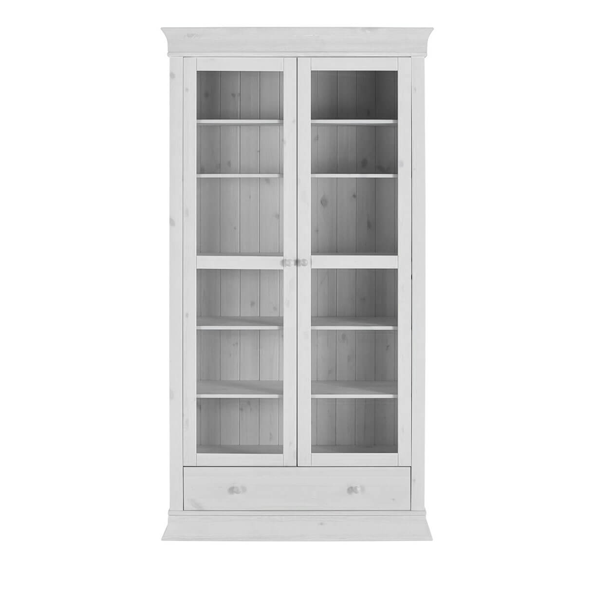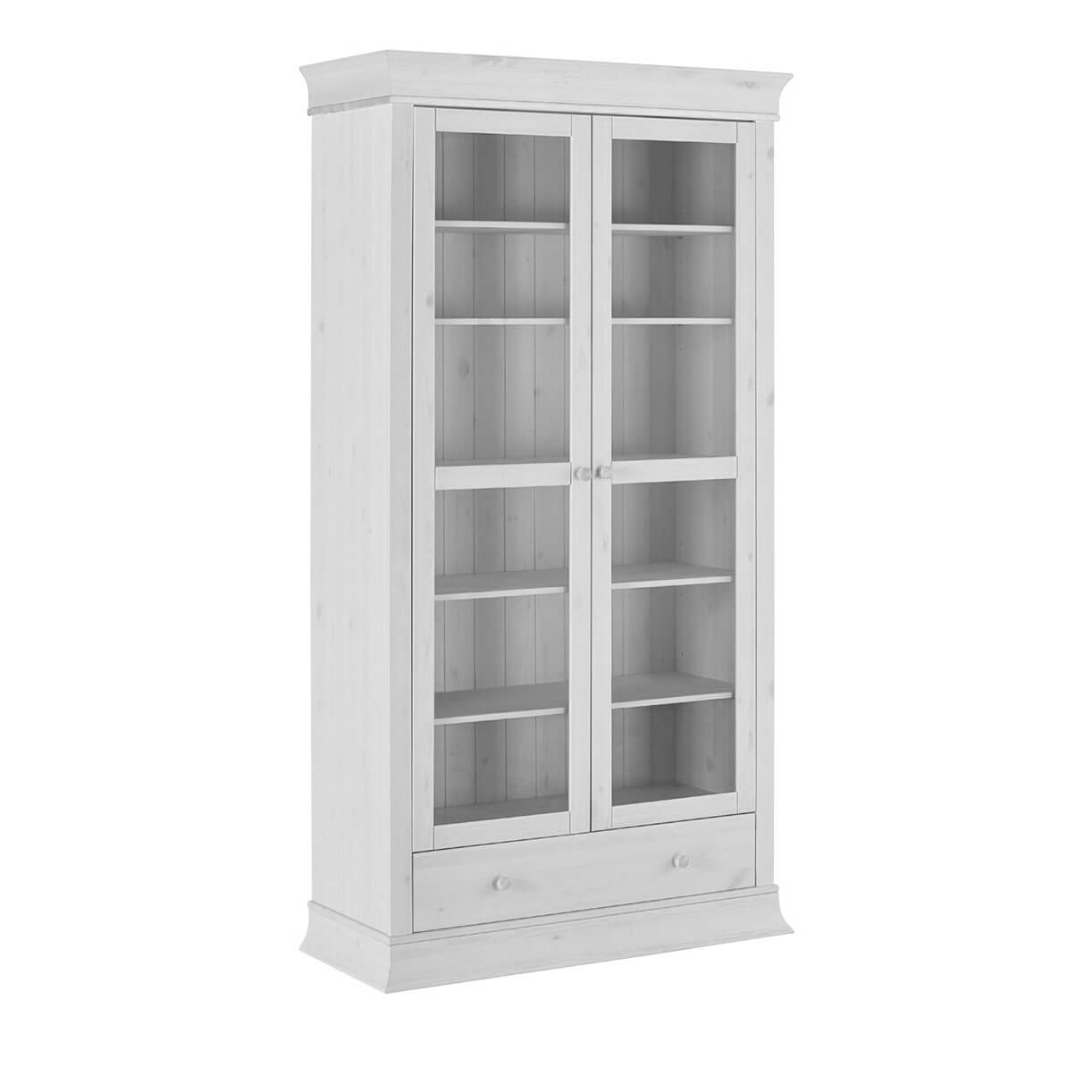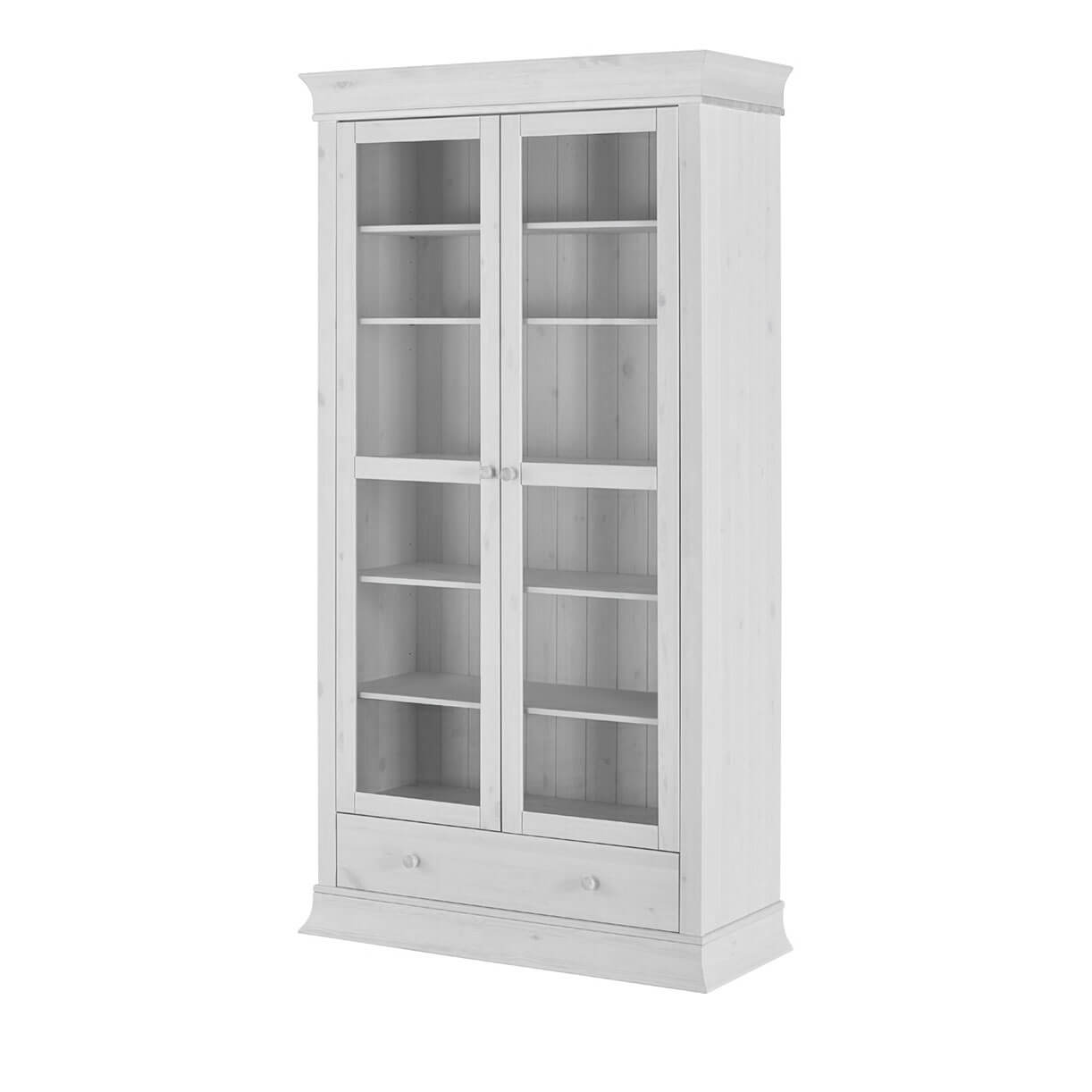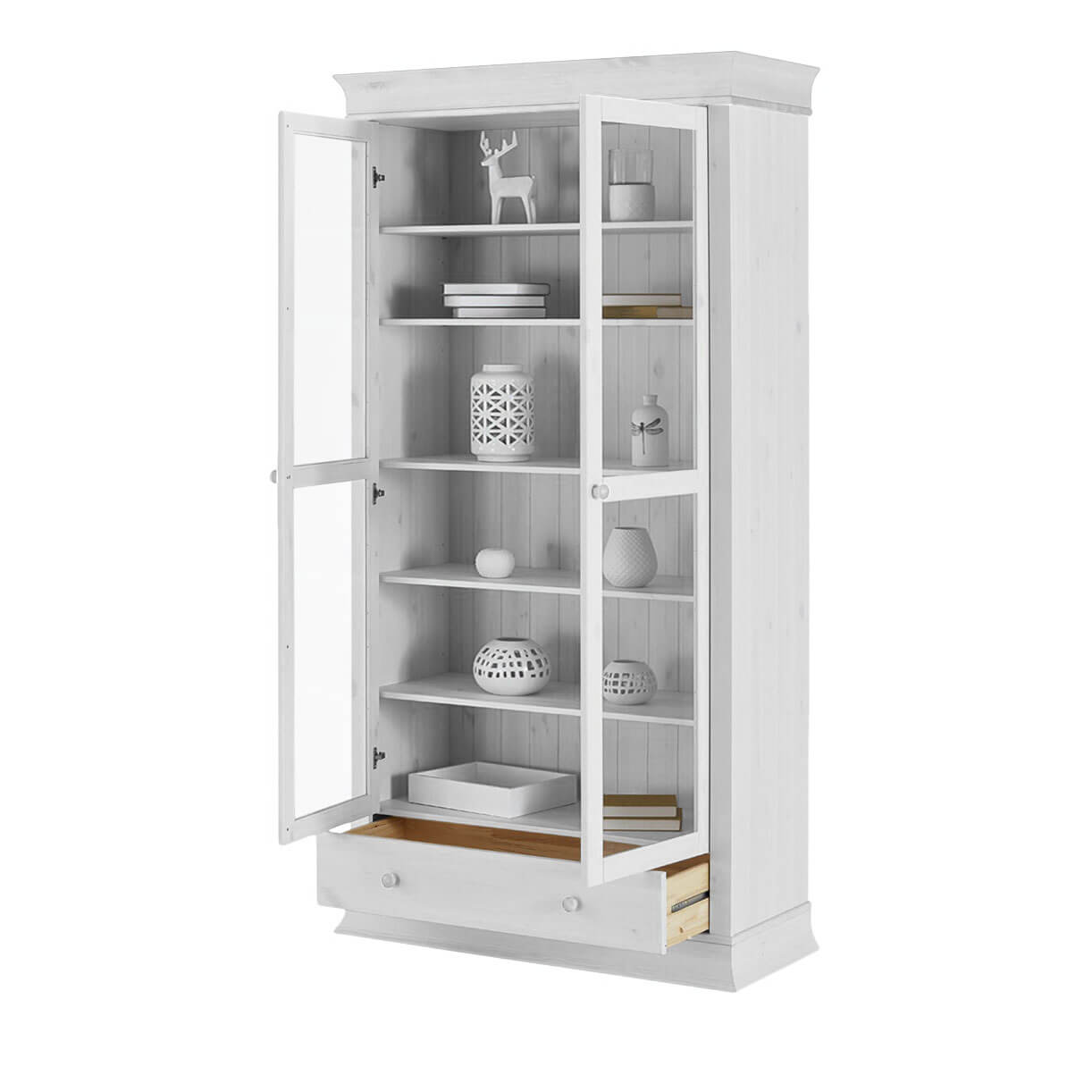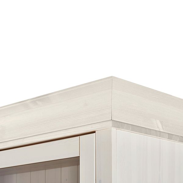 Декоративные элементы лакированной сосны придают шкафу ностальгический вид. Две большие двери установлены с прозрачным стеклом, за которым расположено шесть полок.