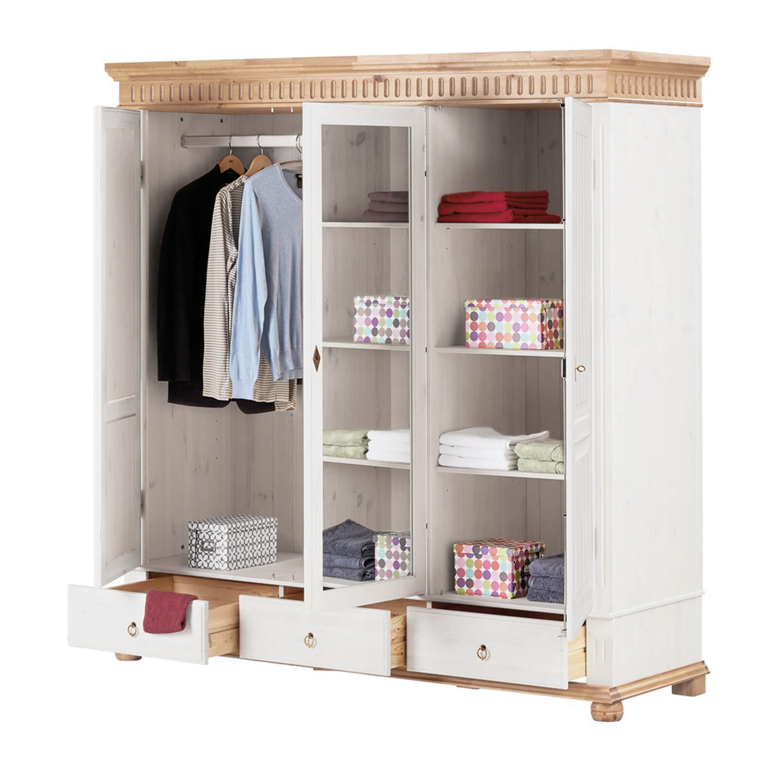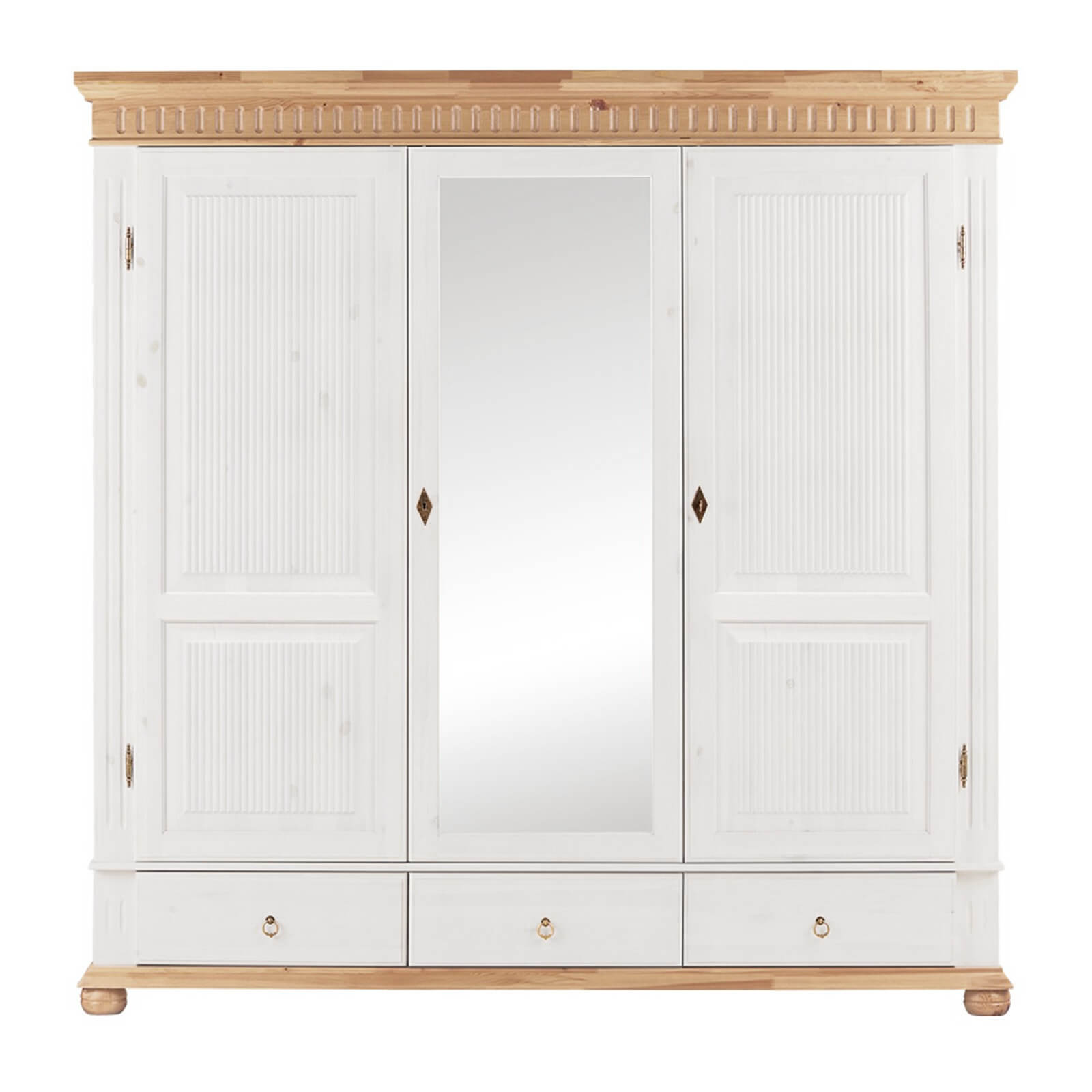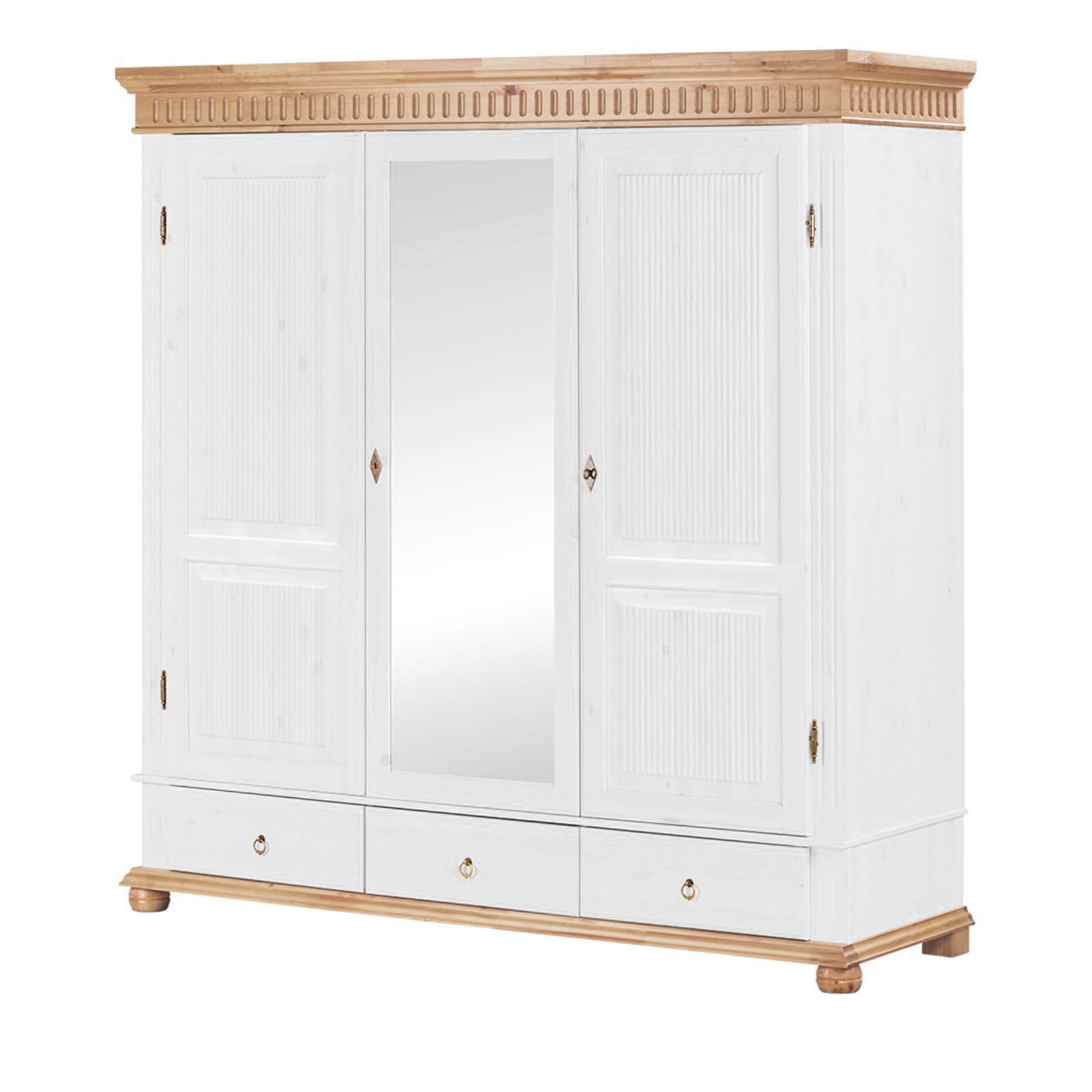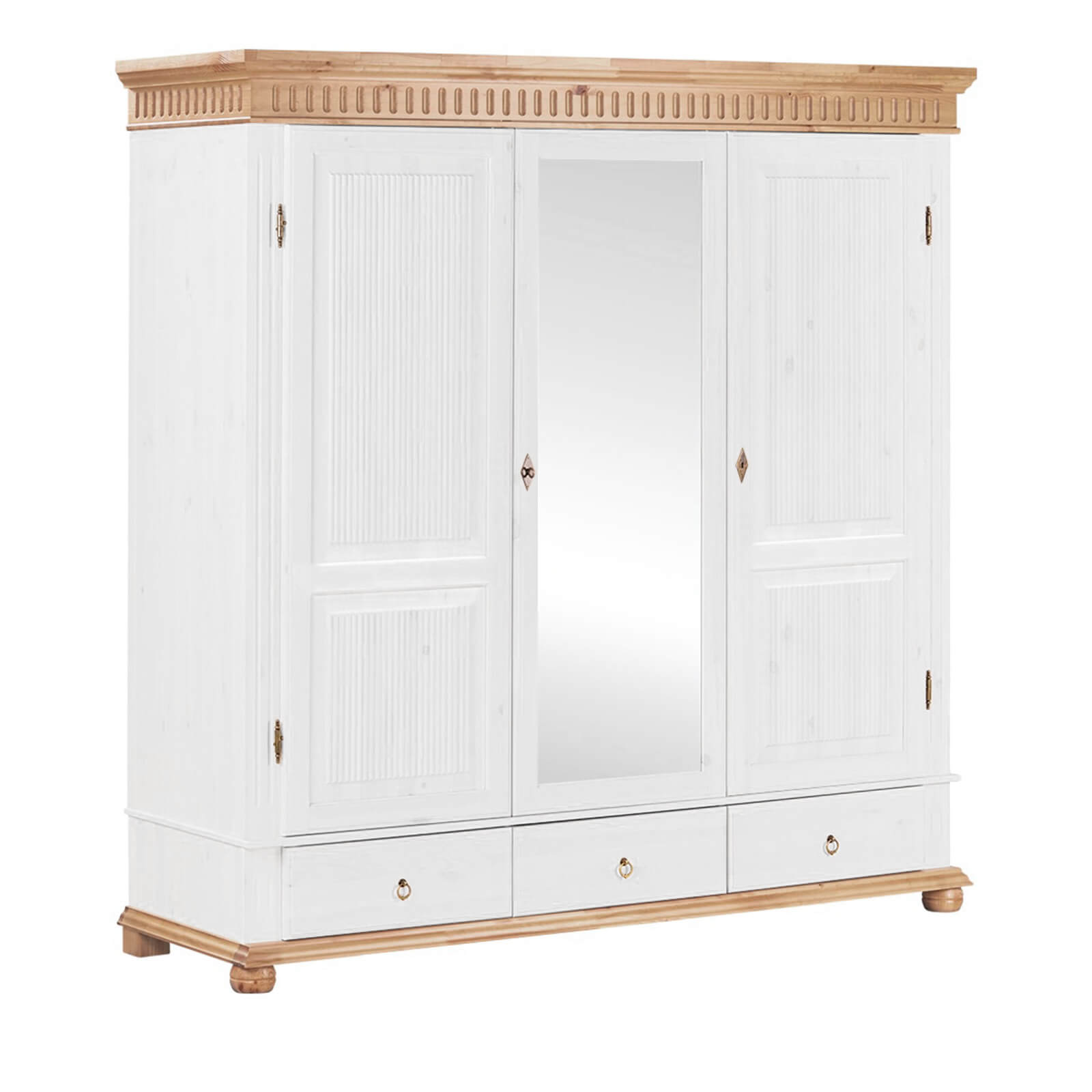 Комбинированный деревянный Шкаф Хельсинки 3-SP-GT Белый воск +антик из массива сосны от белорусского завода ММЦ.
