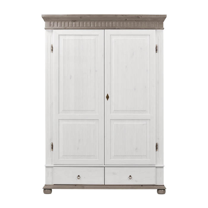 Двухдверный платяной Шкаф Хельсинки-2-GT Белый воск+серый из массива сосны с разделенной филенкой на дверях.