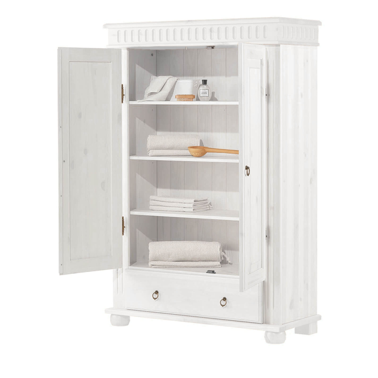 Шкаф Хельсинки-21. Удобный бельевой шкаф - сосна в белом воске.