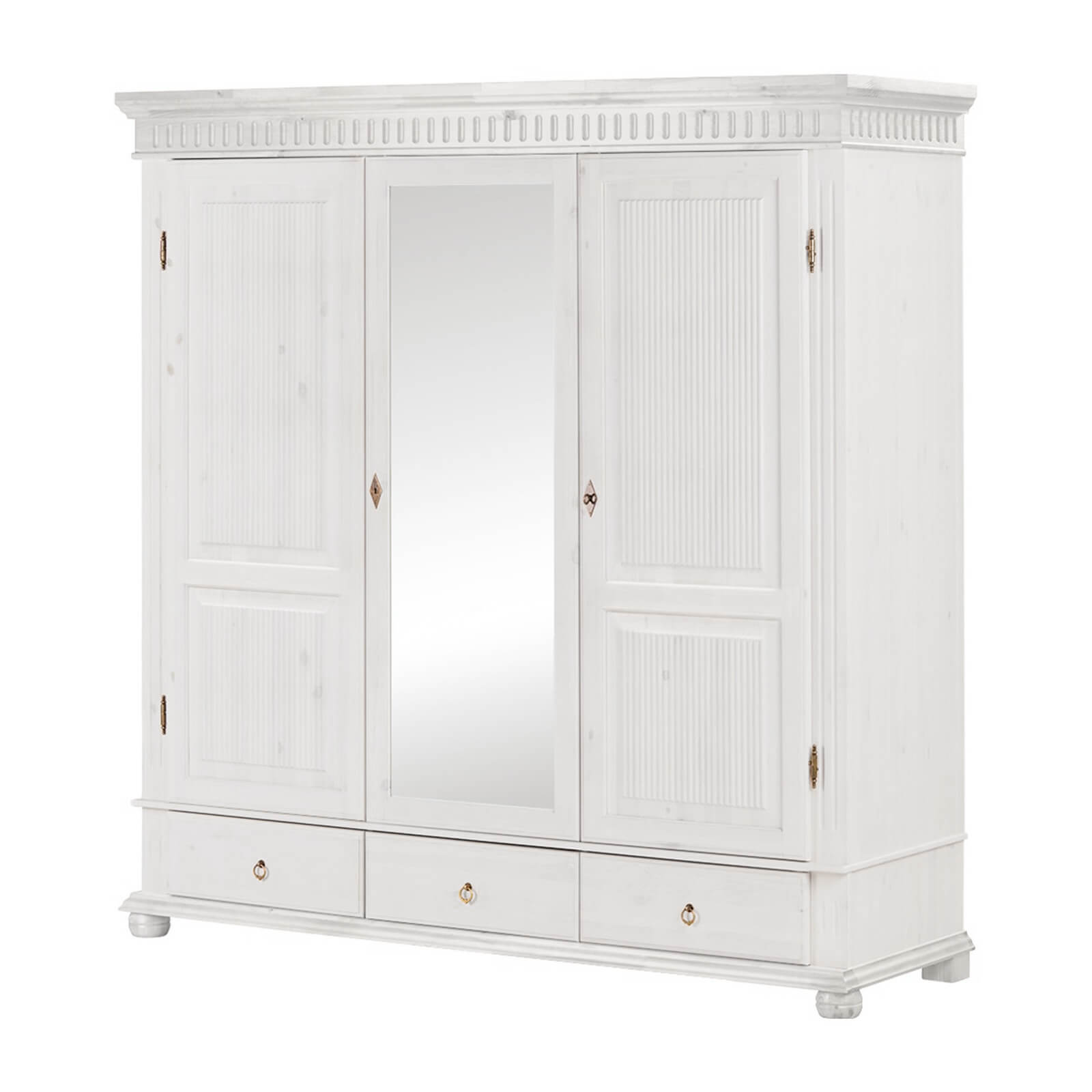 Высокий комбинированный трехдверный шкаф Хельсинки 3-SP-GT- М из массива сосны в спальню или гостиную.