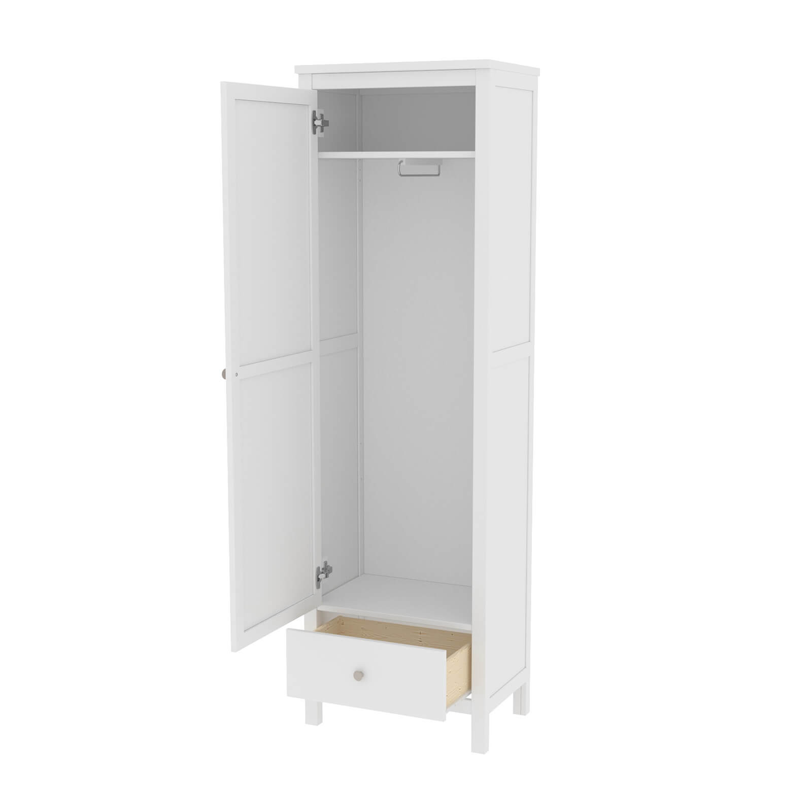 Деревянный Шкаф для одежды Кантри-11 в прихожую белый лак изготовлен из массива сосны, дно ящика и задняя стенка шкафа выполнены из оргалита.
