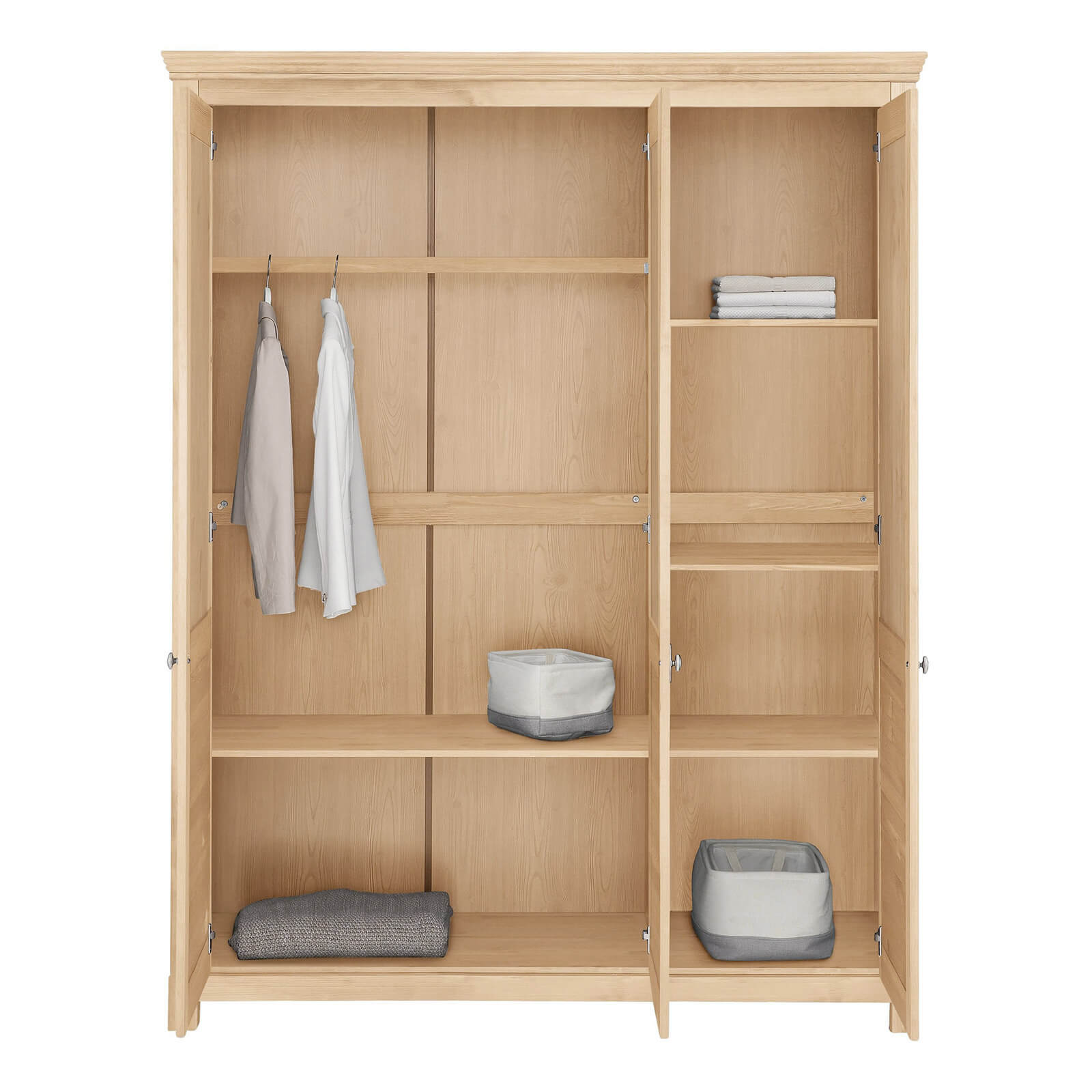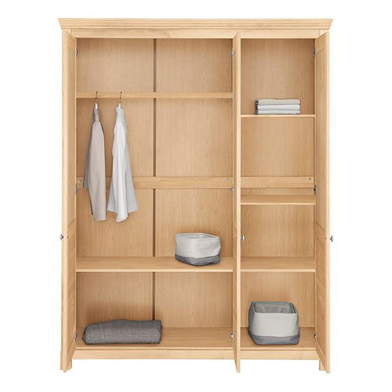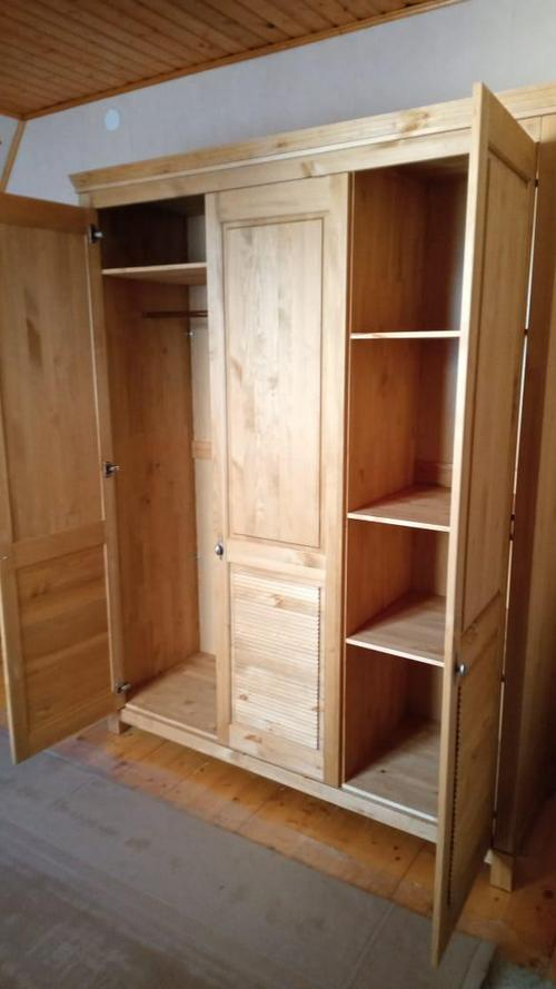 Трехдверный шкаф для одежды из массива сосны - это не только функциональная мебель, но и стильный акцент в вашем интерьере. Покупая эту модель от ММЦ, вы получите высокое качество, надежность и эстетическое удовлетворение.