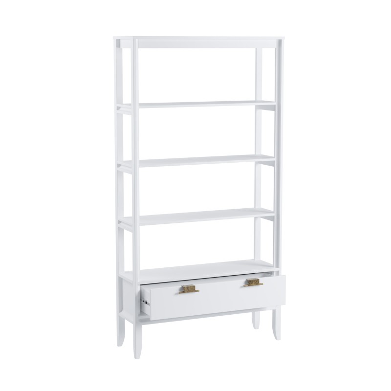 Стеллаж Бридж сквозной широкий с 1 ящиком белый лак