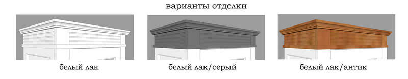 Мебель доступна в цвете “белый лак”, "белый лак/антик", "белый лак/серый".