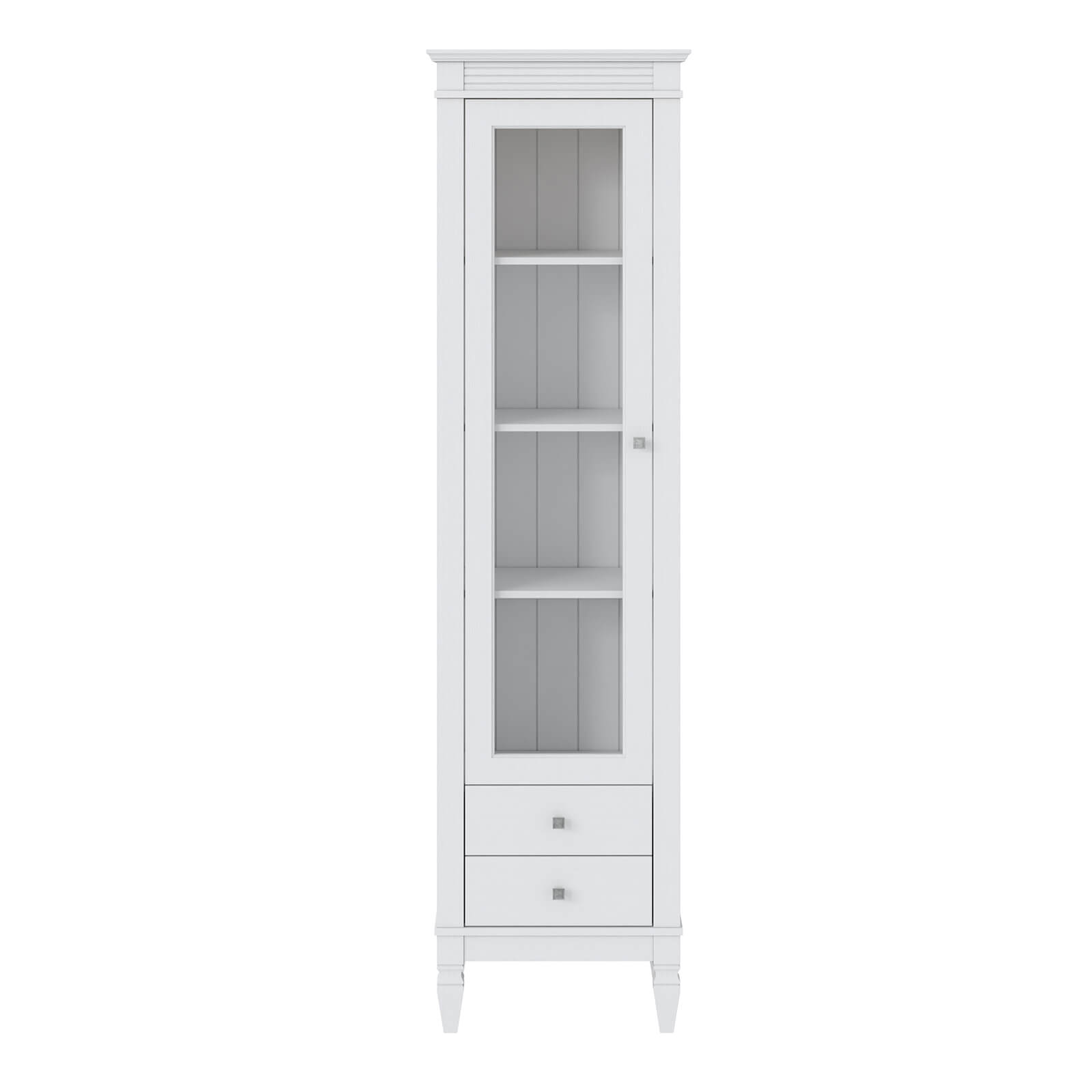 Деревянный стеллаж из сосны / кухонный буфет Ольса-101/002 (Левый/Правый) Белый лак , 1 дверь со стеклом правая-левая на выбор, 2 ящика.