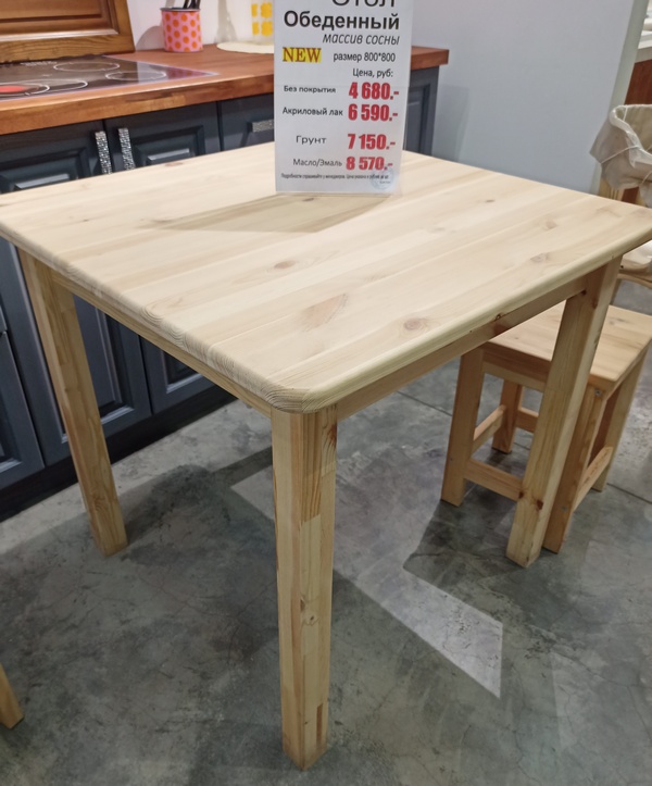 Стол обеденный 800 х 800 сосна без покраски — Цена 6290 руб