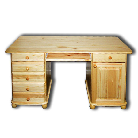Стол письменный 214 из массива сосны с двумя разными тумбами - покрыт бесцветным лаком, выкатная доска по середине под клавиатуру. Удобные вместительные ящики на роликовых направляющих, за дверцей внутренняя полка.