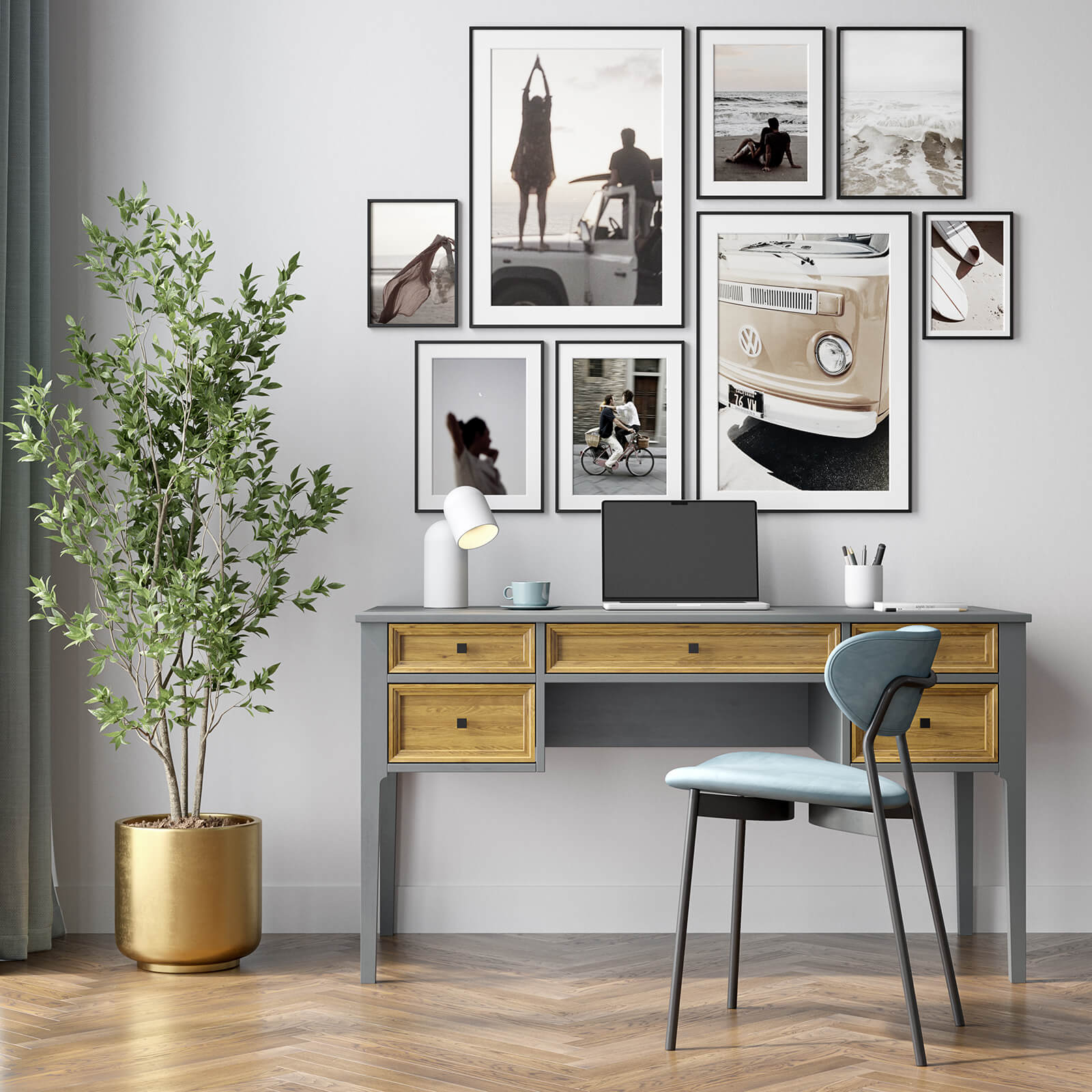 Стол письменный Квадро-С 05 серый 7042 + антик №24