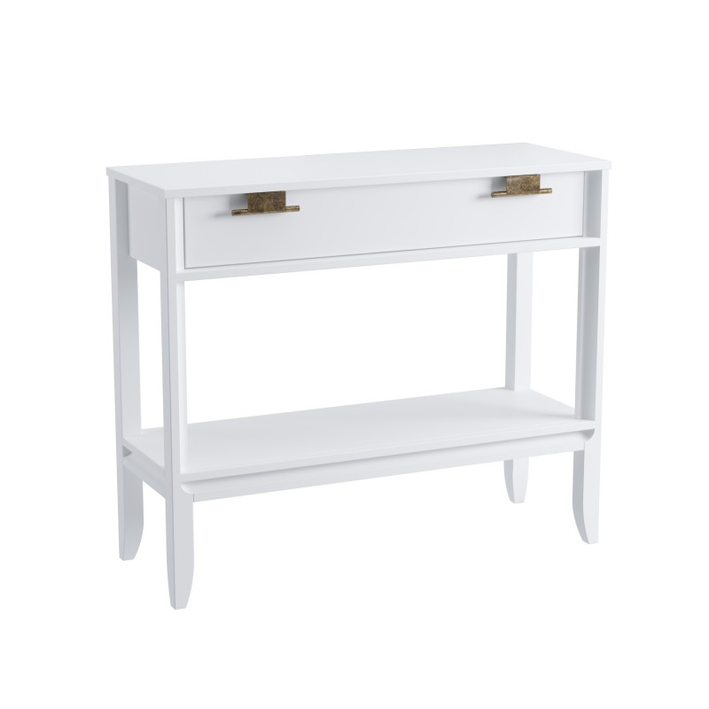 Консоль Бридж 1 ящик и полка белый лак массив сосны.