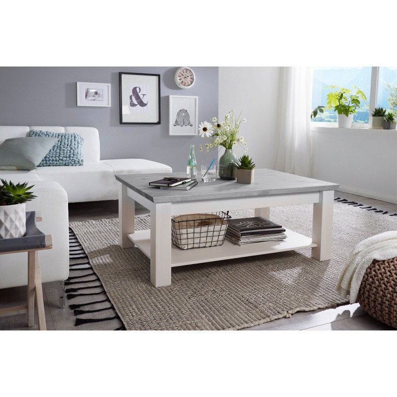 Стол журнальный Форест большой белый воск/антрацит массив сосны.