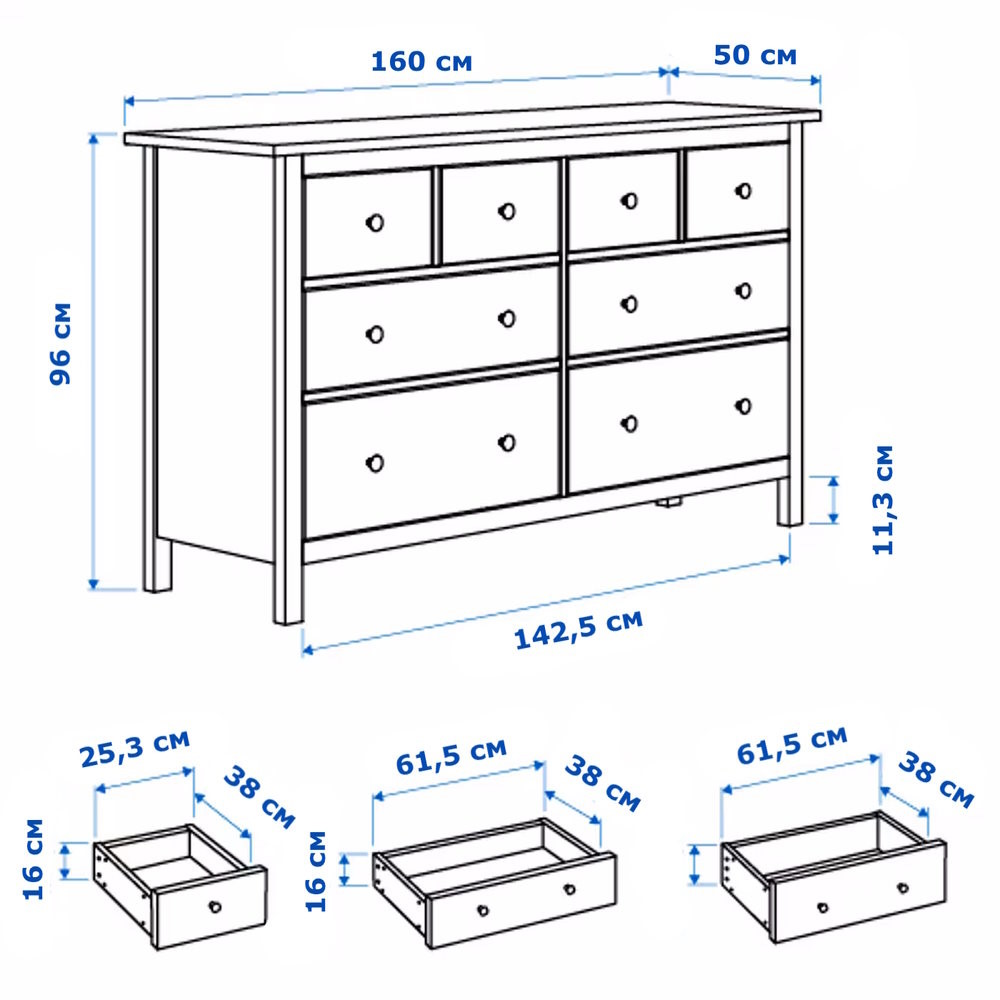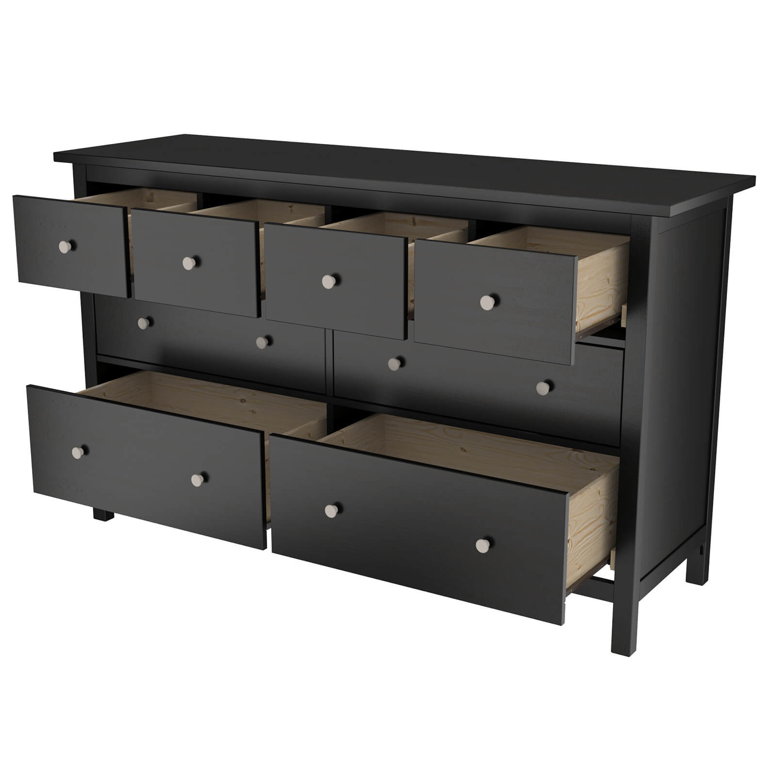Деревянный комод с 8 ящиками КАНТРИ (ХЕМНЭС) HEMNES черный. Корпус изготовлен из массива сосны. Дно ящиков и задняя стенка из оргалита.
