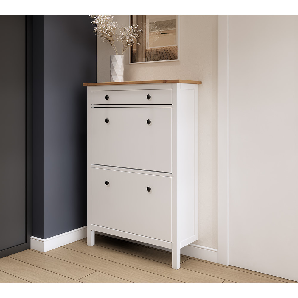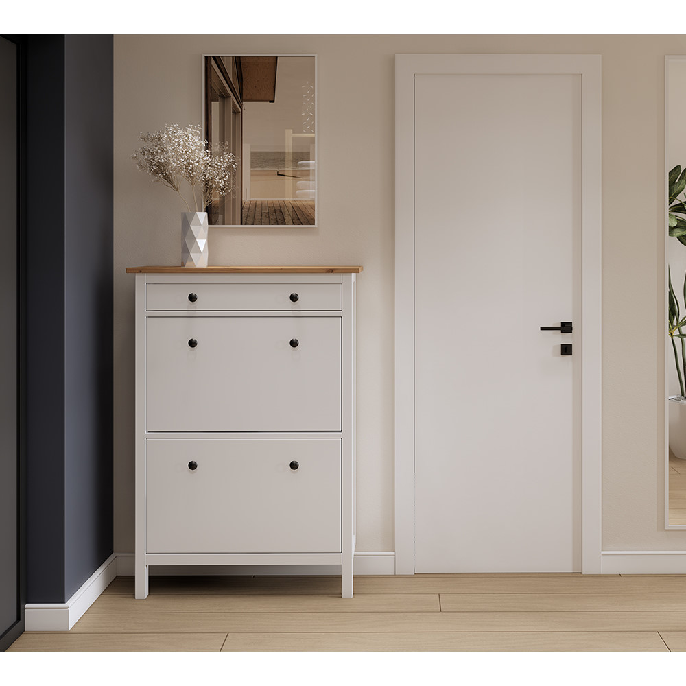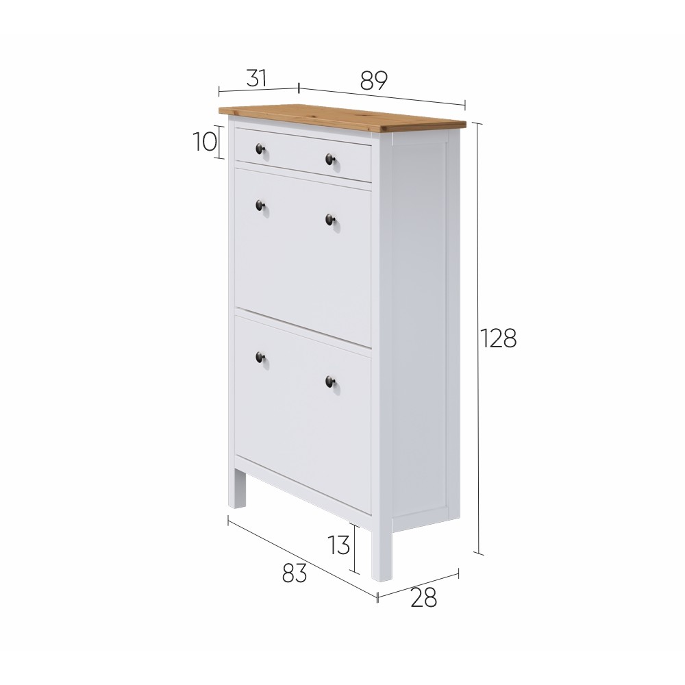 Обувница 3 ящика ХЕМНЭС (Россия) 89х128х31 белый/светло-коричневый