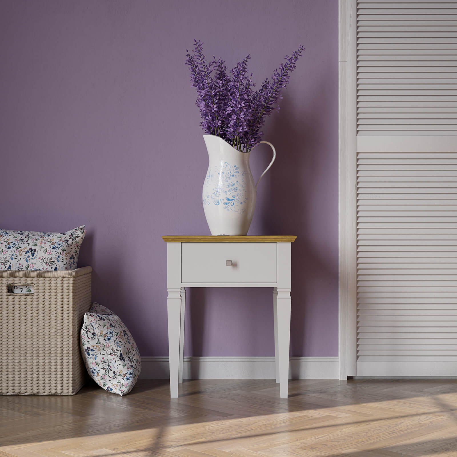 Тумба прикроватная Ольса-С 01 Белый лак + антик №24 массив сосны.
