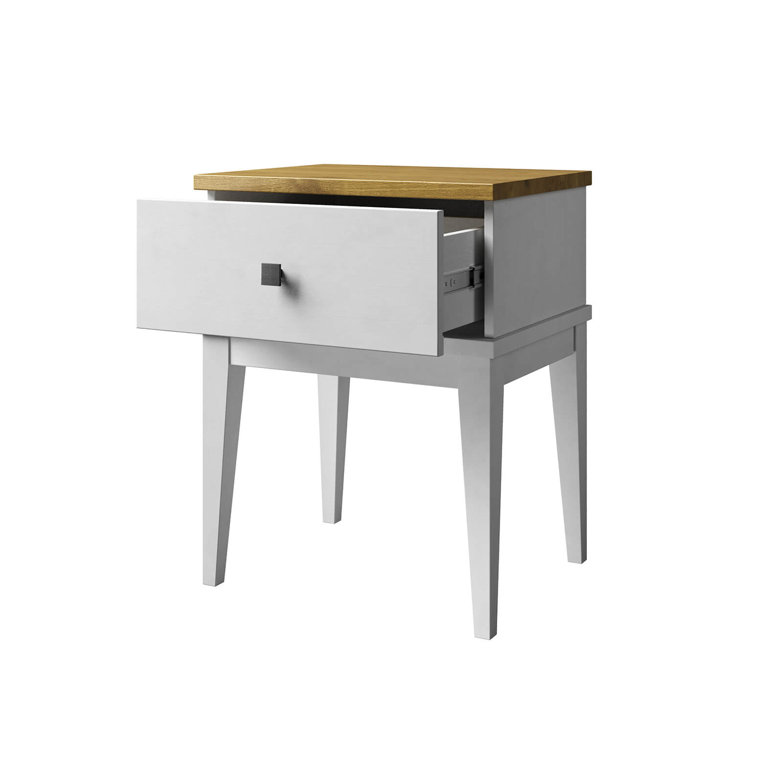 Тумба прикроватная Бон Вояж 01 белый лак / антик 24 - изготовлена из массива сосны.