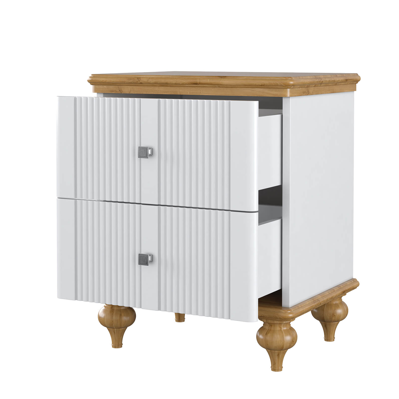 Тумба прикроватная Рандеву-02 МАССИВ СОСНЫ Белый лак + антик №24