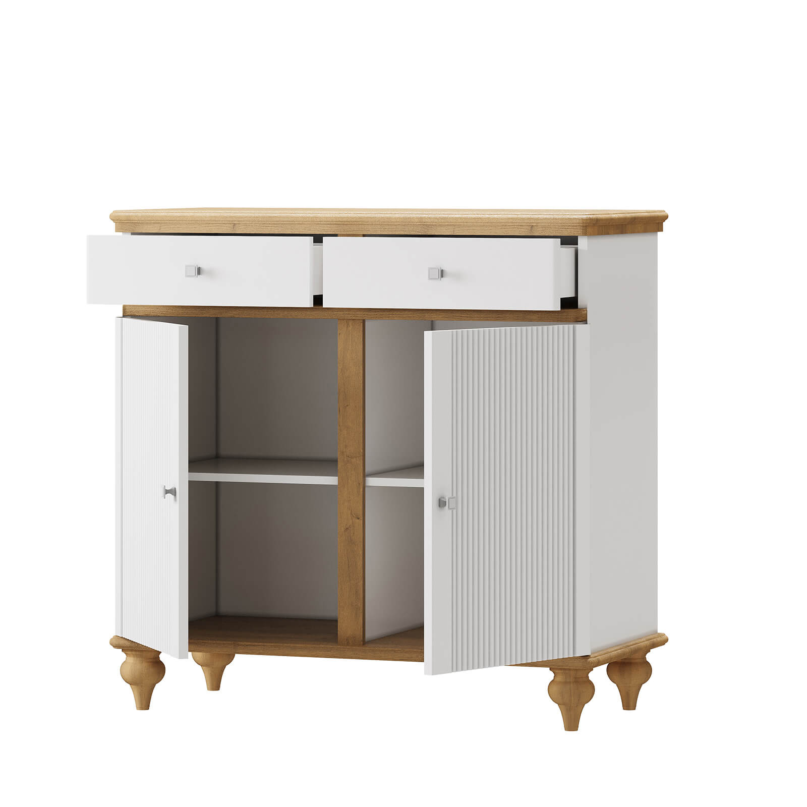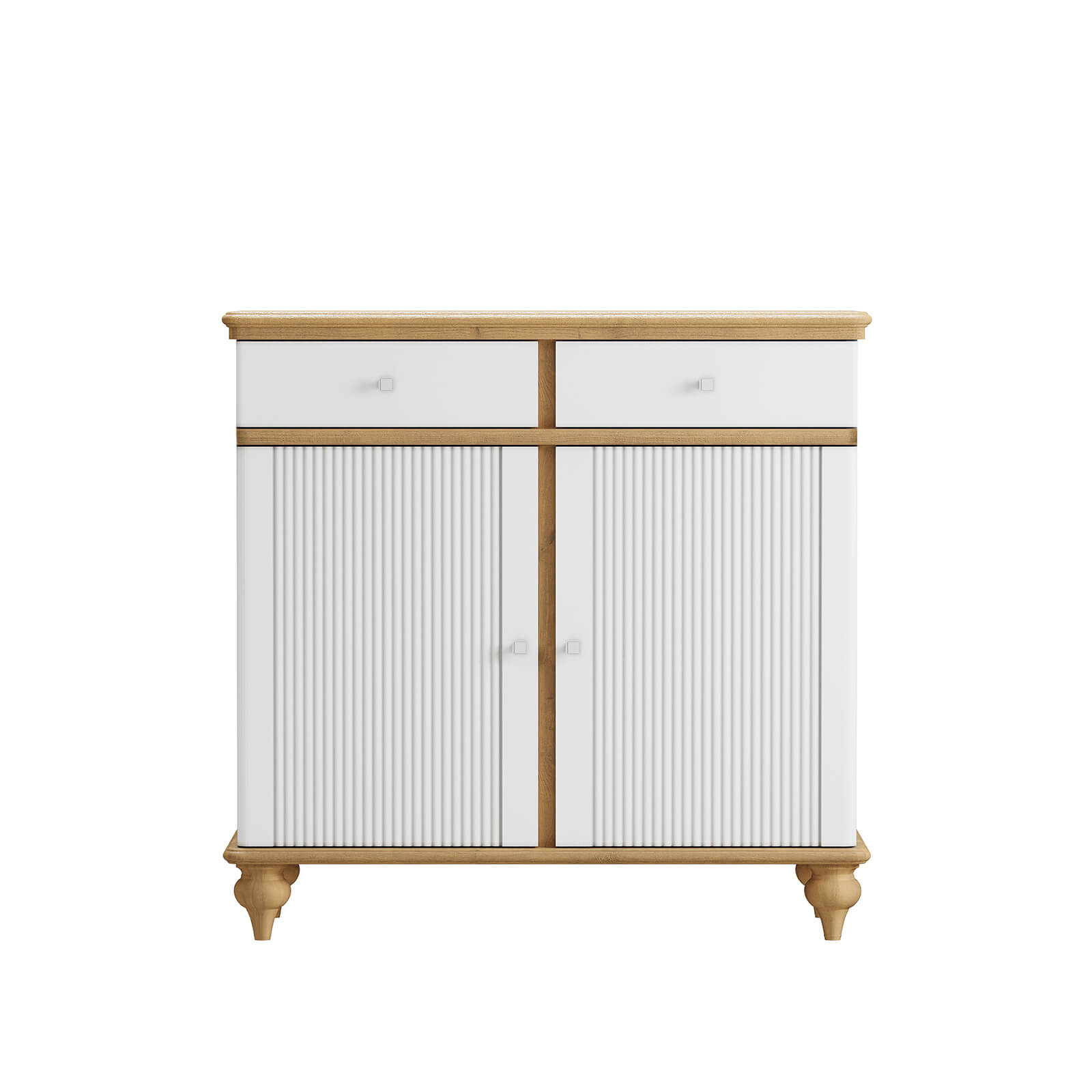 Такая комбинация материалов позволила создать практичный в эксплуатации и уходе комод.
